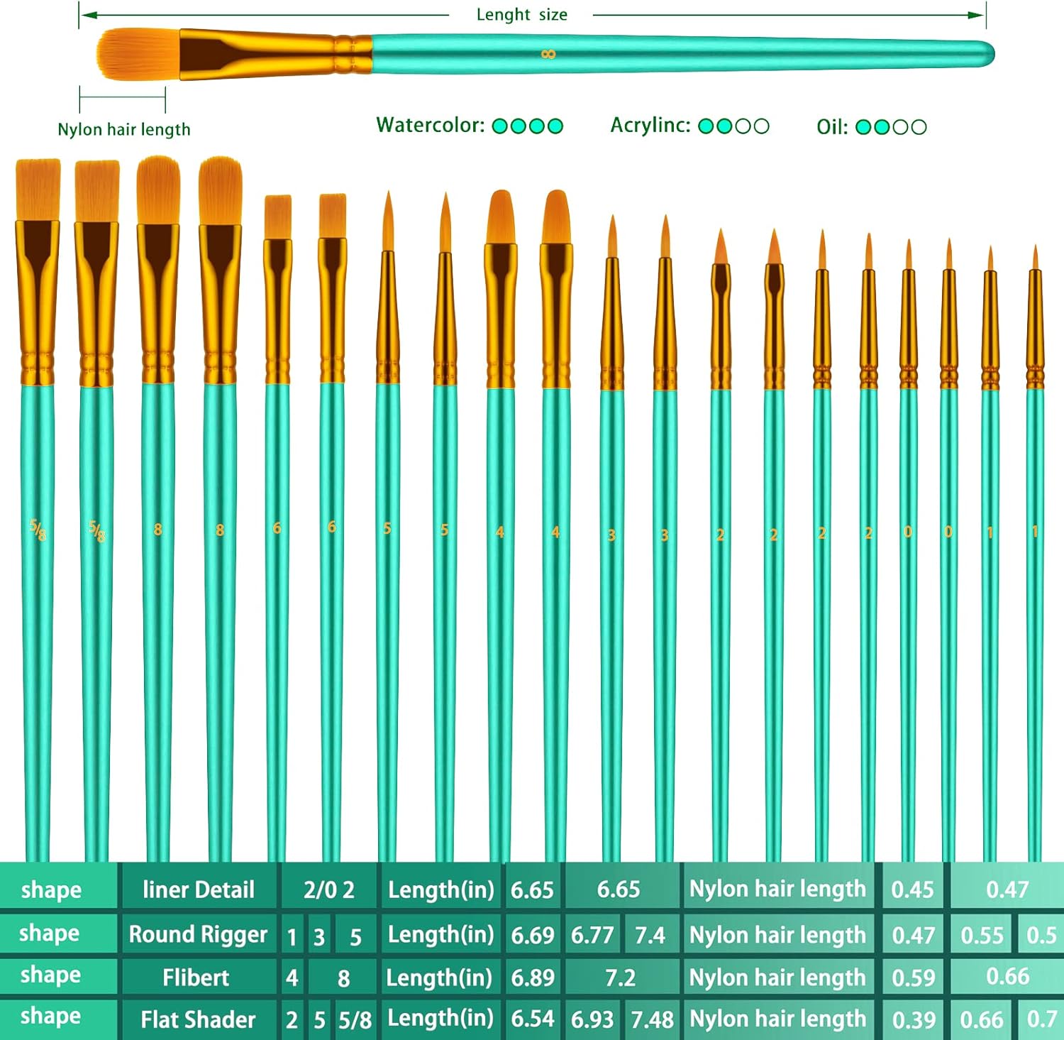 Paint Brushes Set, 20 Pcs Paint Brushes for Acrylic Painting, Oil Watercolor Acrylic Paint Brush, Artist Paintbrushes for Body Face Rock Canvas, Kids Adult Drawing Arts Crafts Supplies, Green