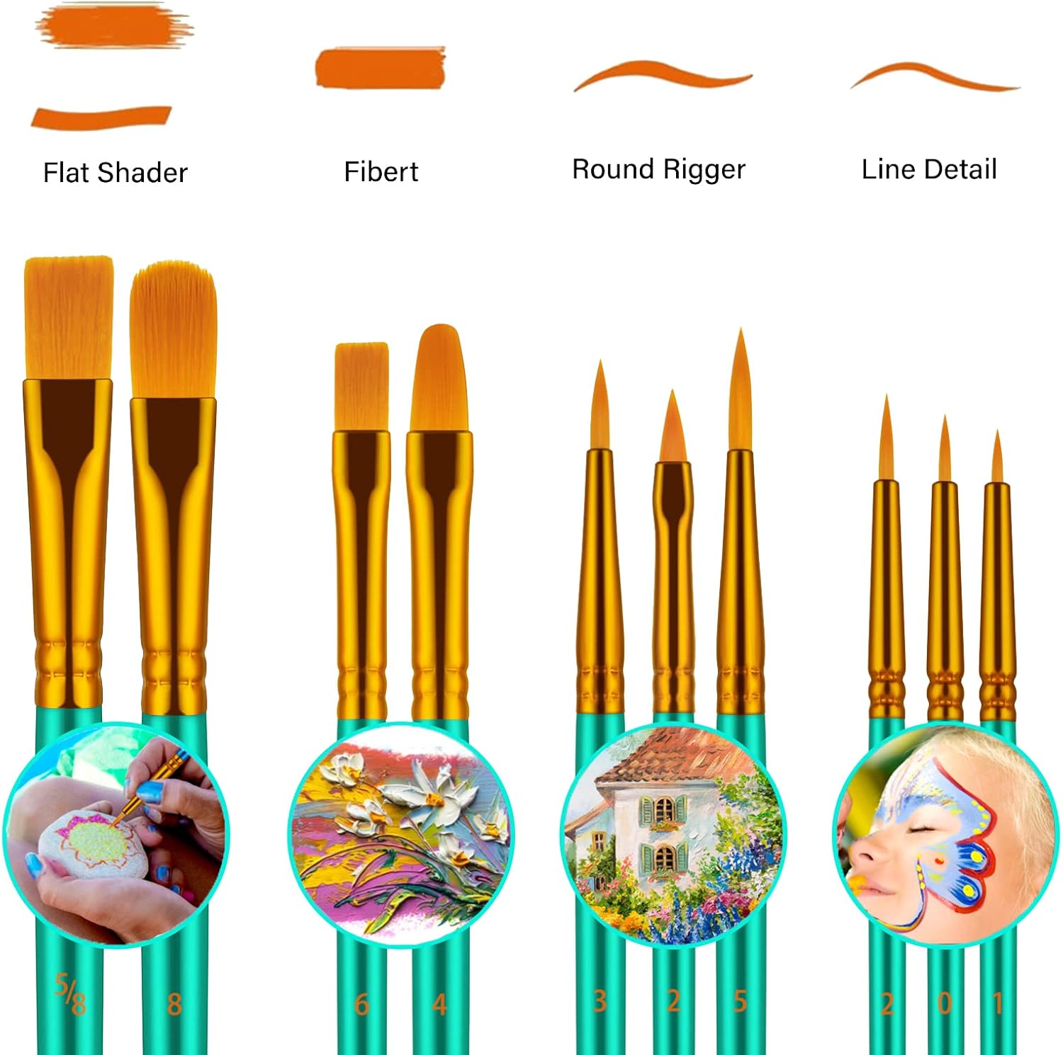 - Great Acrylic Brushes: Great idea for Artists, Beginners, Kids, Adults, Family, Girls&Boys, Teachers, Students, Great for School, Classroom, Travel, Home, Class, Office and Outdoor; Supplies for Christmas&Halloween, Birthday, Party, Back to School, New Year's Day, Valentine's Day, Easter, Mother's Day, Thanksgiving Day.