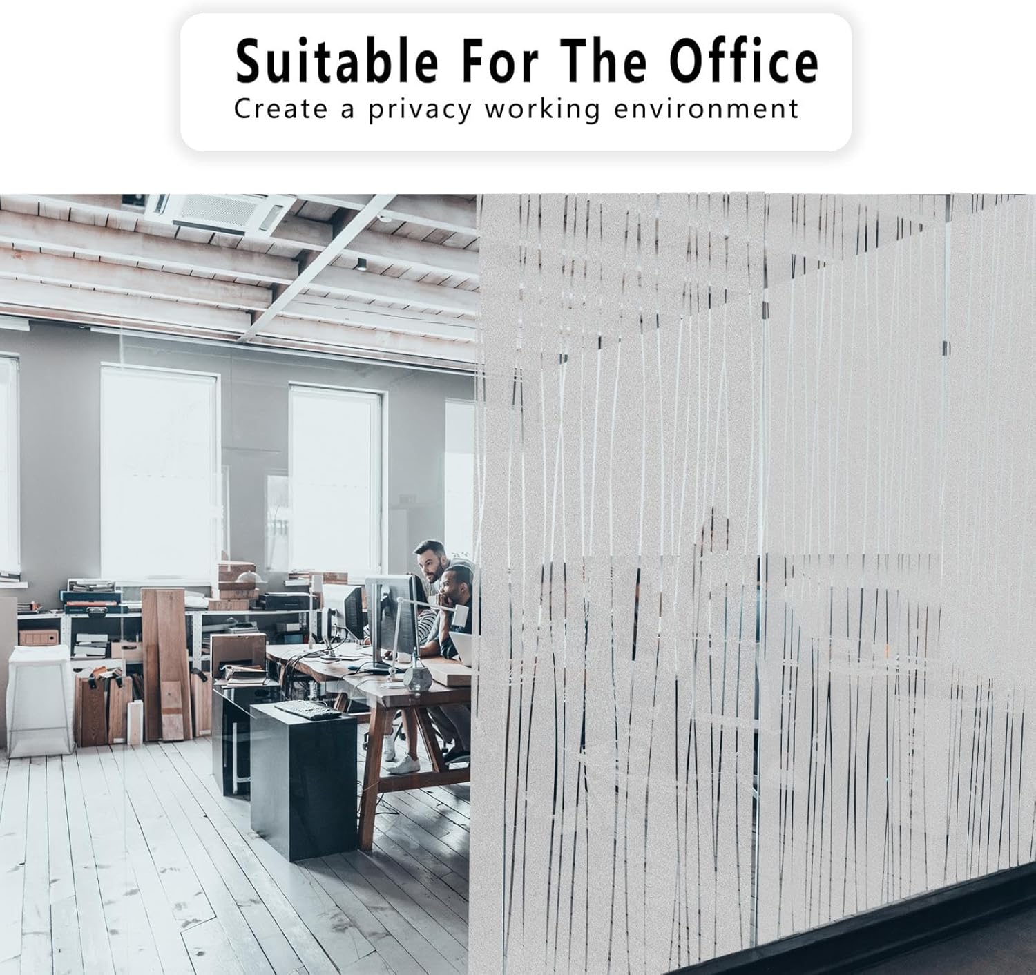 Finnez Window Privacy Film Decorative Frosted Window Cling Privacy Film for Glass, Non-Adhesive Heat Anti-UV for Home Office Living Room, Irregular Stripe Patterns, 23.6 x 157.4 Inches
