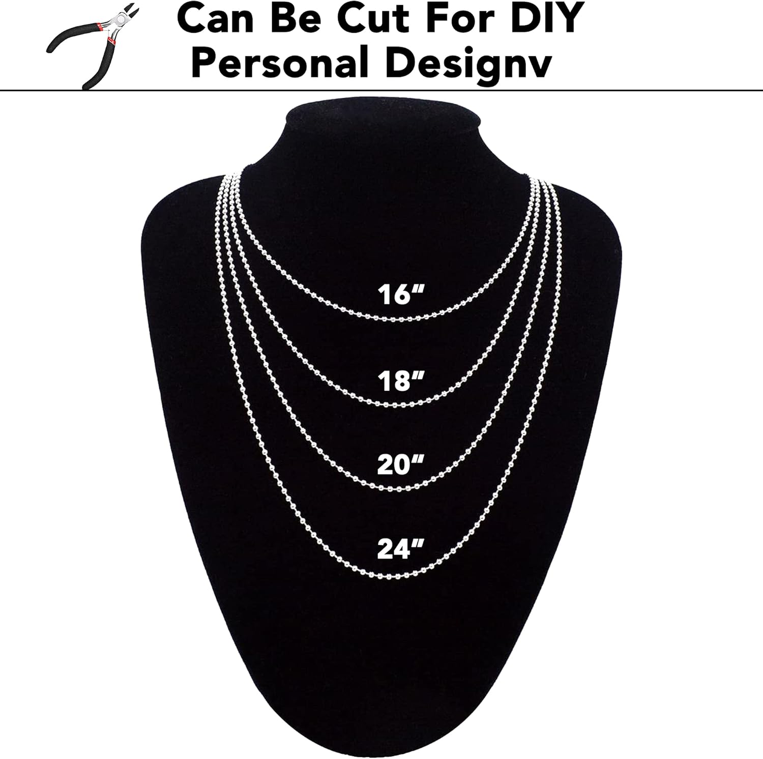 - 33 FEET ROLL SET: 33ft (10m) silver stainless steel ball chain in a spool with 20 pack silver stainless steel ball chain connectors.