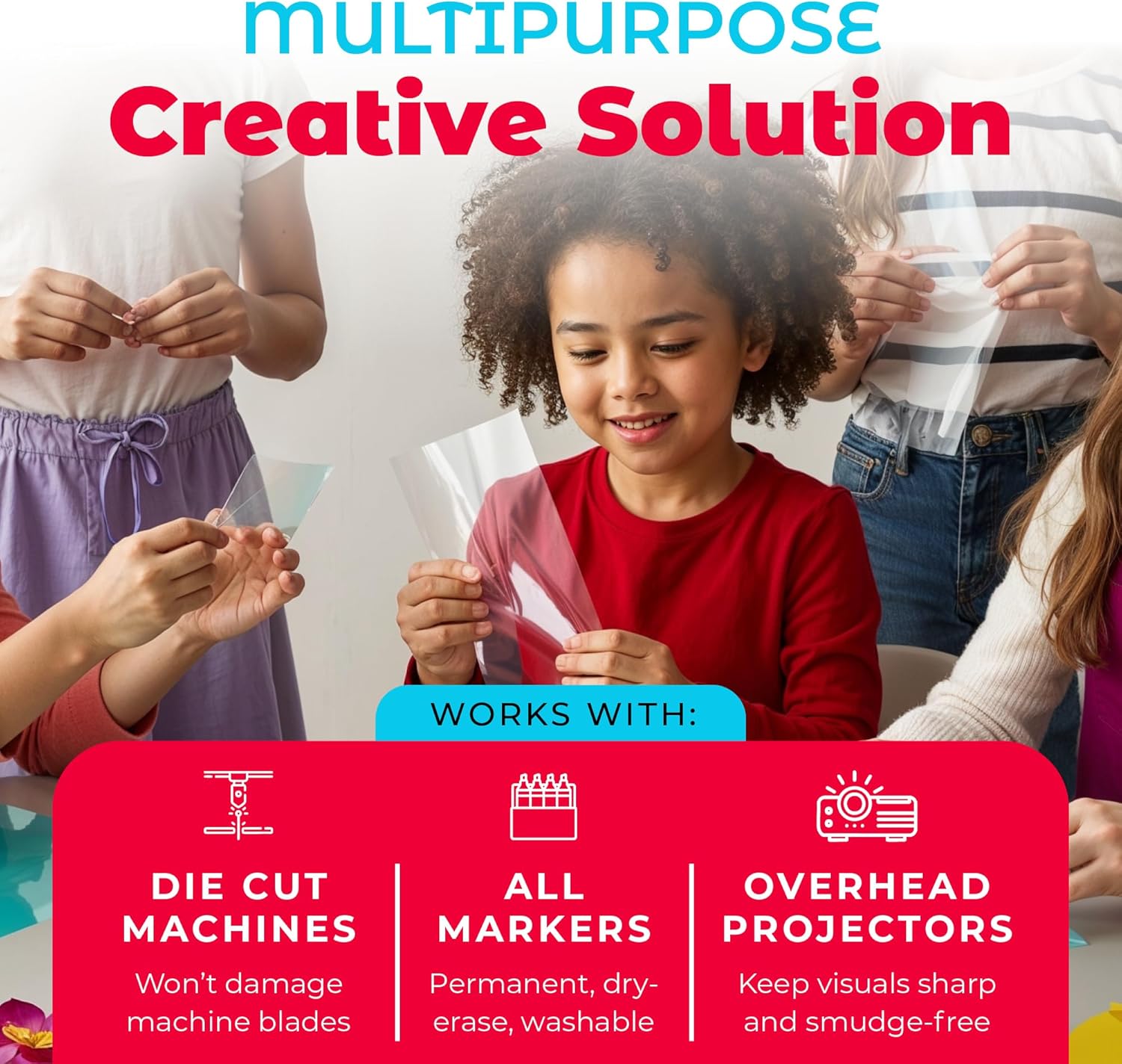 - MULTIPURPOSE NON-PRINTABLE SHEETS - Perfect for overhead projectors, stencils, overlays, project book covers, charm shakers, photo albums, greeting cards face shields, science experiments, suncatchers, stencils, mixed media projects, food decorating purposes, and more. NOT suitable for printers.