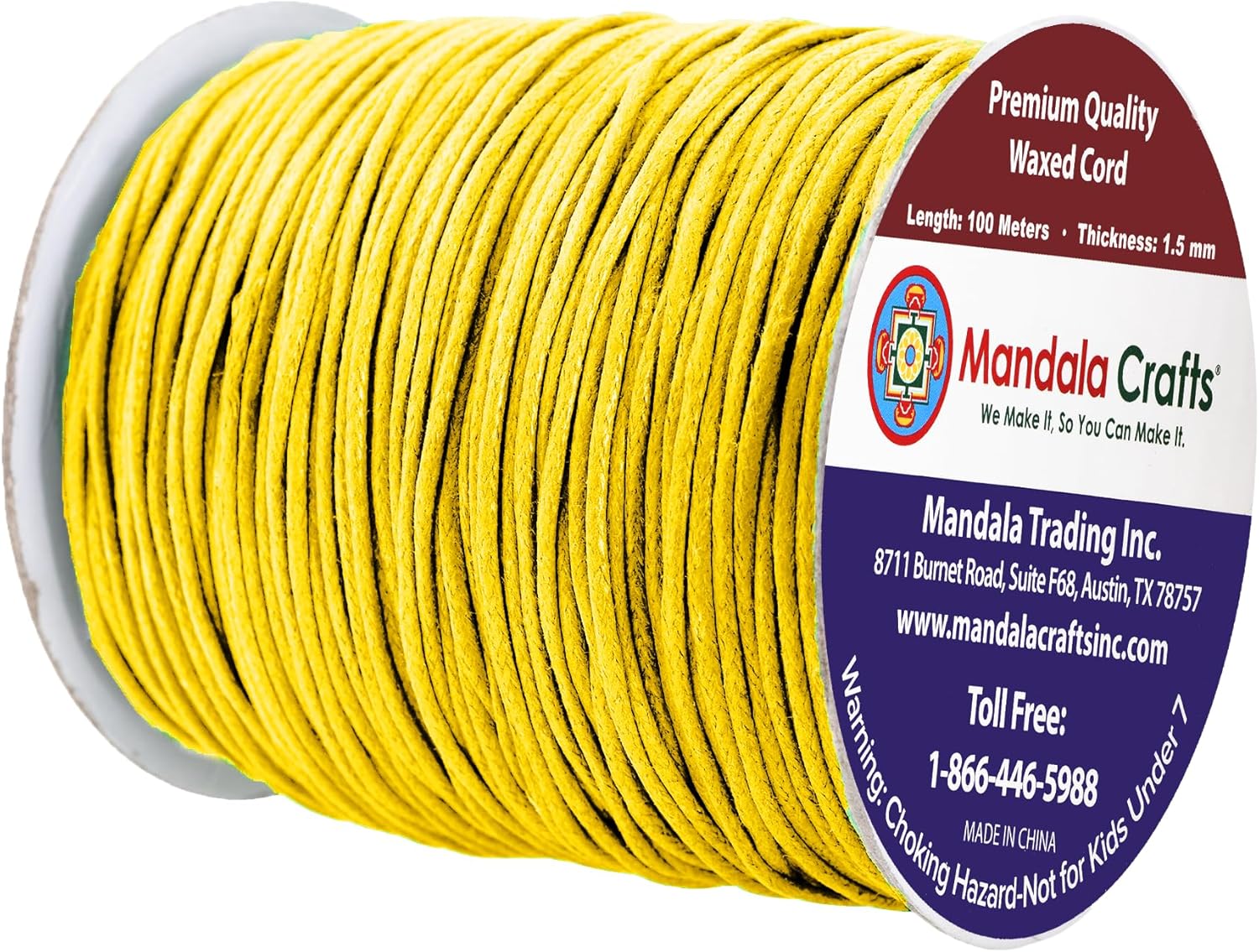 - Bulk Yellow Waxed Cord Roll: The non elastic colorfast 1.5mm cotton cord with heat treatable ends is fraying resistant & bleed free. The continuous 3 ply 109 yds long 1.5mm jewelry waxed cord made from 100 percent cotton is easy to cut, tie, knot, or glue.