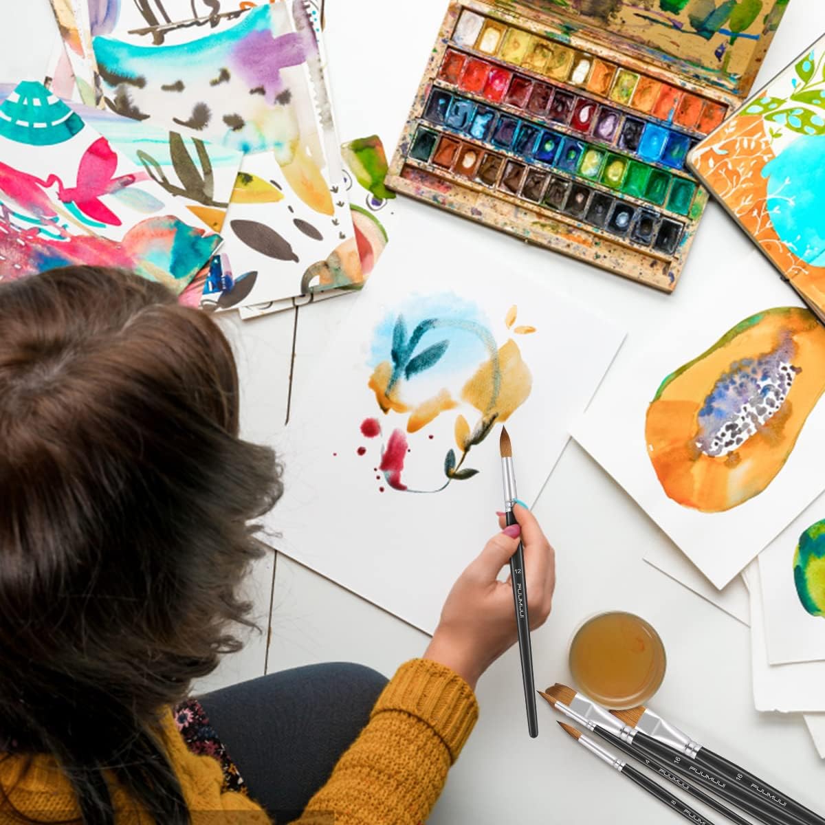 - Short and Comfortable Handles - Whether you are a professional painter looking for new art supplies or a beginner just start to enjoy painting, this watercolor brushes for artists will surely provide a new level of finesse and control in your painting. The short, ergonomic handle ensures you no-slip grip, precision, and ease of usage, prevent hand fatigue caused by long brush handle.