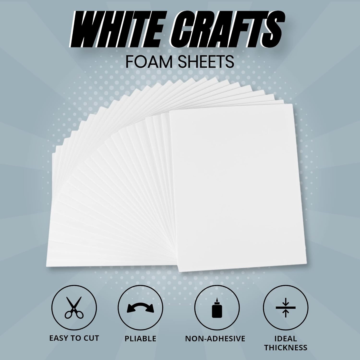 24 Ct Sheets White EVA Cosplay Foam in 9” x 12’’ Sheets; High Density Thick Foam 85 kg/m³, 2mm (1/12”); Great for Costumes, Props, Armor, Masks, Arts and Crafts Projects