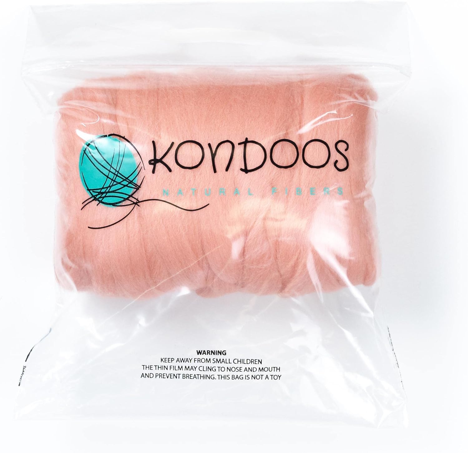 Colored Natural Wool roving, 8 OZ. Best Wool for Needle Felting, Wet Felting, handcrafts and Spinning.Weaving Felting Big Yarn (Salmon Pink)