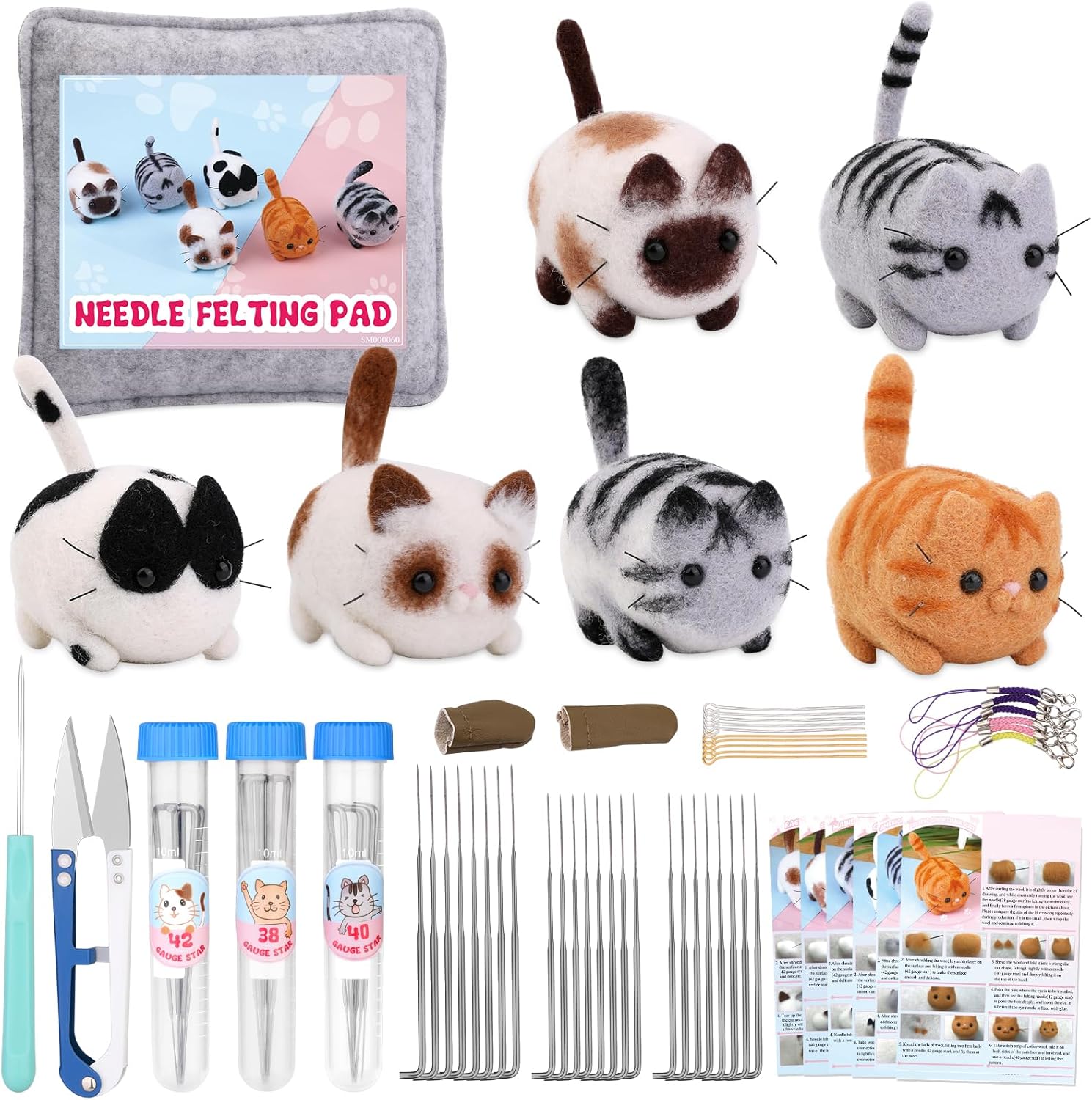 - Instruction manual:This needle felting beginner kit is provided with 6 pieces cat making material bag, various tools and accessories you need, includes 6 x needle felting instruction manual(English) and high-definition pictures, step-by-step instructions on how to create each cat dolls, it is a perfect present for needle felting beginners