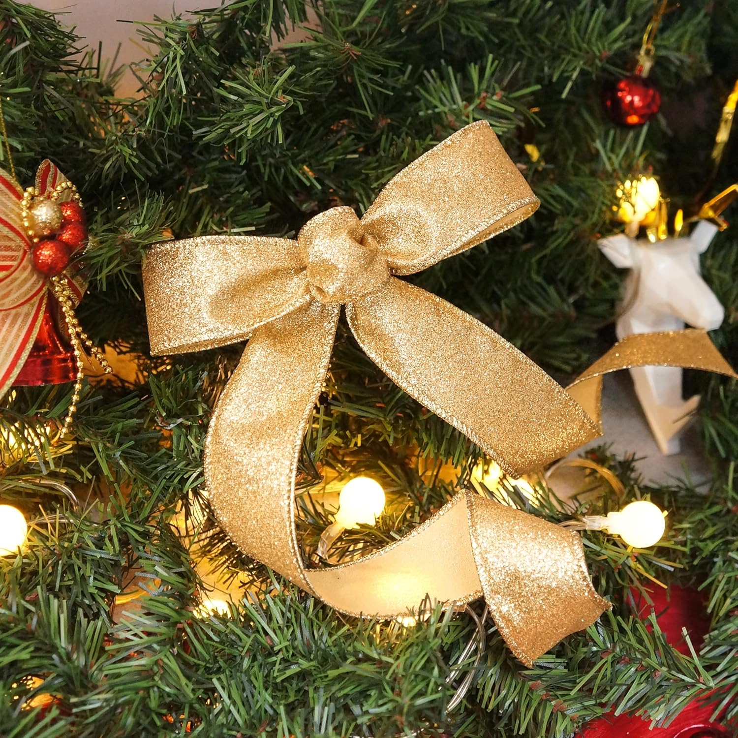 - A MUST-HAVE FOR DECORATION - Don't miss it if you're choosing a Glitter Wired Ribbon 1.5" yellow gold for your decoration! Our ribbon works perfectly for decorating and adding finishing touch to your craft projects. Simple and elegant.