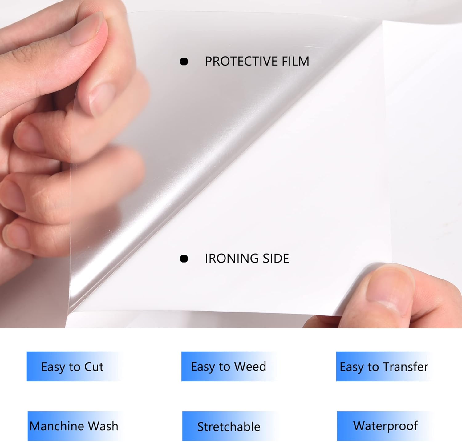 - Glossy heat transfer vinyl HTV: Our htv iron on vinyl is made out of the highest quality polyurethane that is incredibly strong, durable and vibrant fine Using the special technology, the htv is thin and extremely durable and soft. The whole weeding process just like a breeze at the help of sticky back.