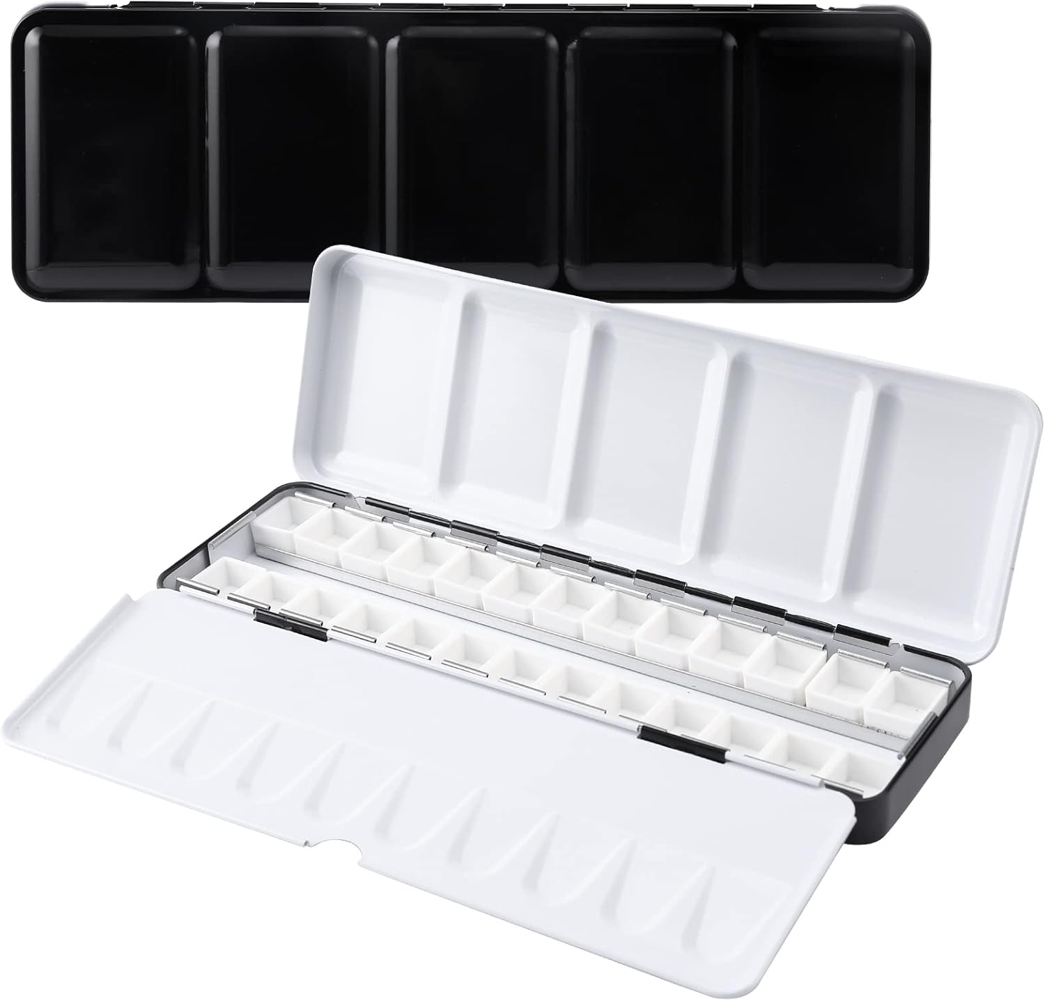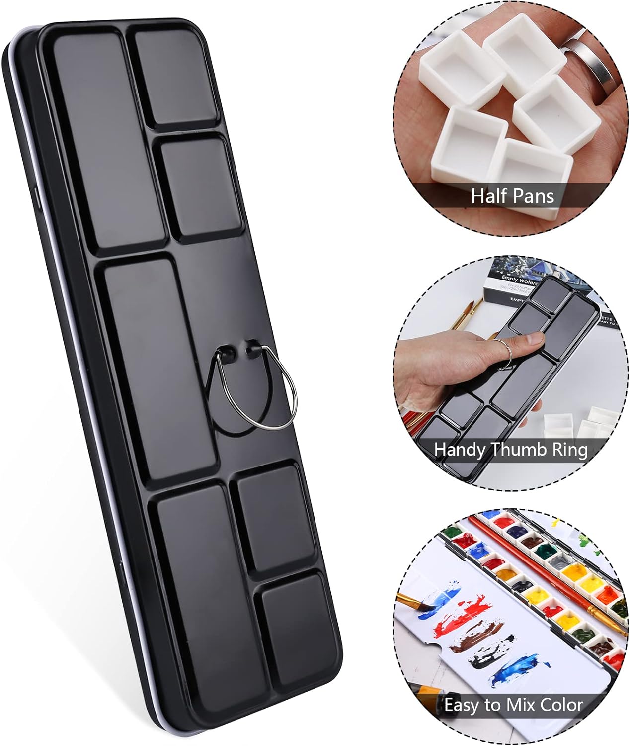 - 【ENAMELED METAL WATERCOLOR PALETTE】Watercolor paint palette is made of tin plate material, features a black enamel exterior and white enamel interior with exquisite workmanship, made by premium material, rust-proof, sturdy and easy to clean.