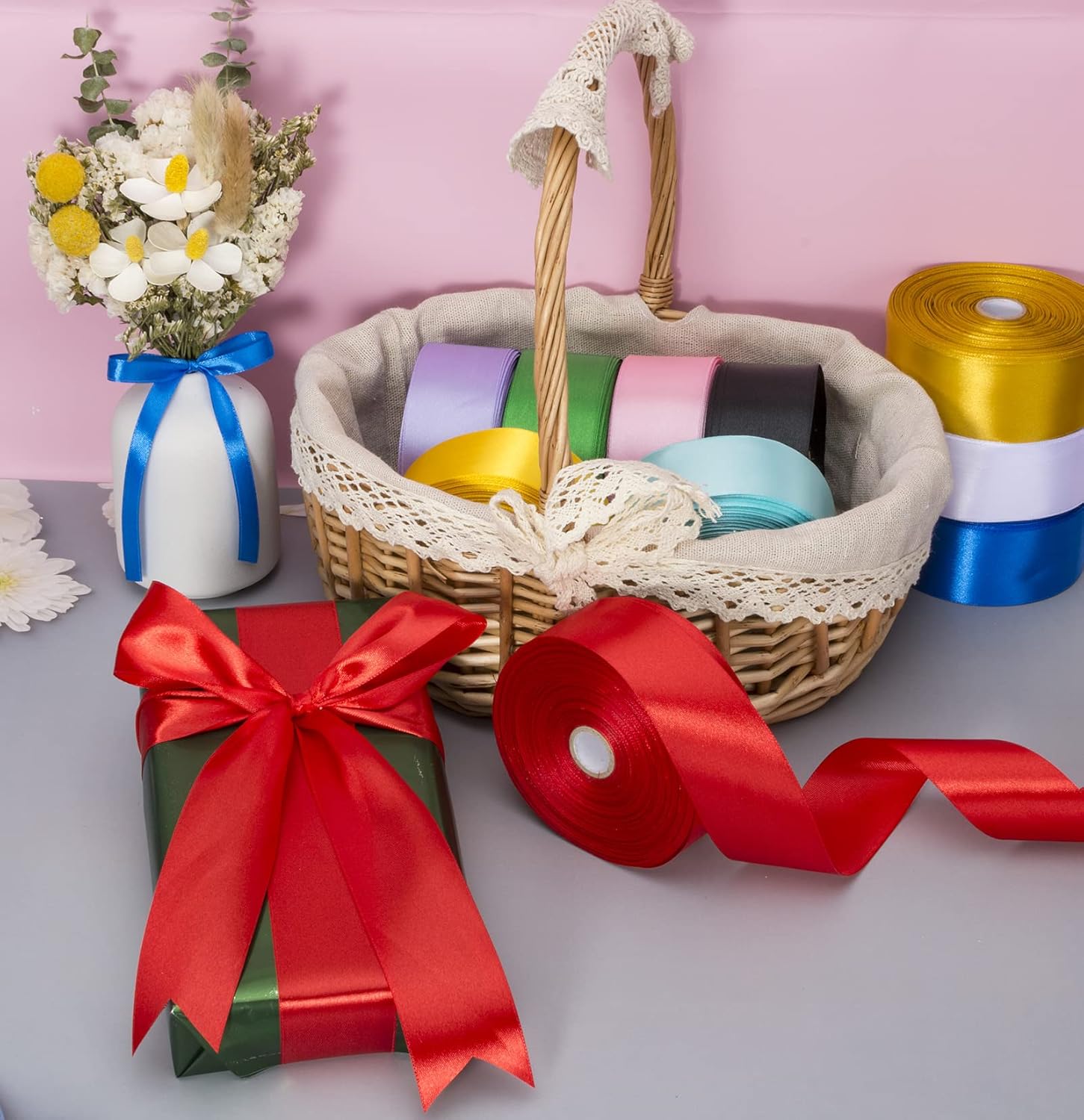 1 1/2 Inch Red Solid Satin Ribbon, 50 Yards Craft Fabric Ribbon for Gift Wrapping Floral Bouquets Wedding Party Decoration