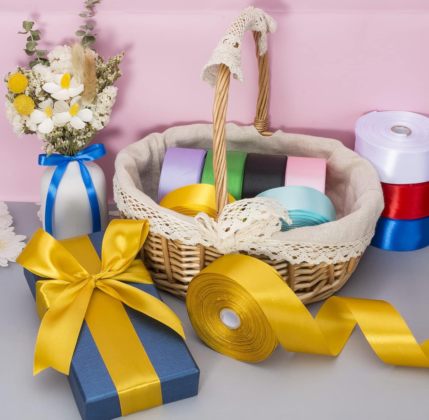 - Versatile ribbon, wide range of applications, especially for gift box packaging, invitations, floral design, handmade roses, festival and party decorations, baking packaging, bouquet ribbons, crafts, and more creative design