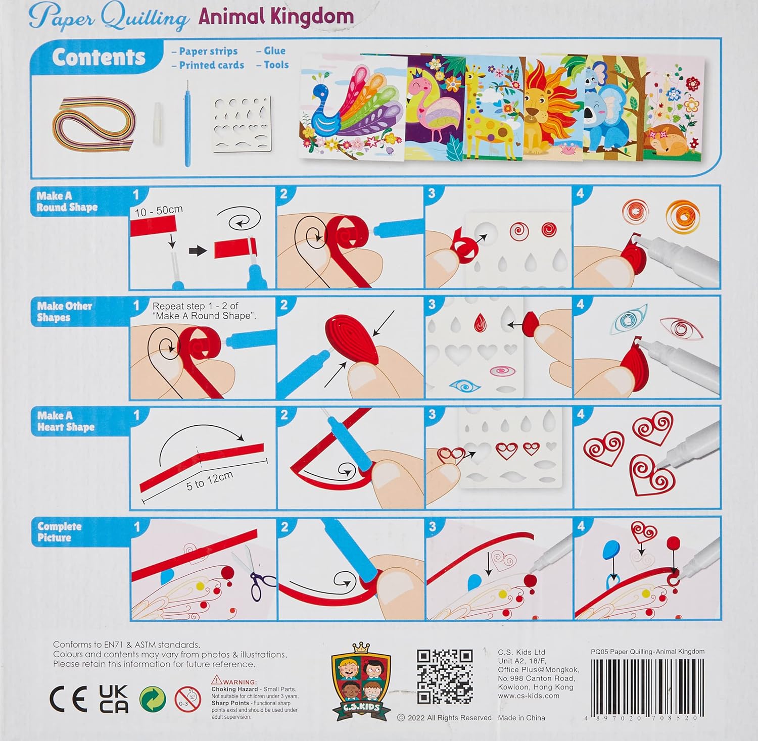 C.S. Kids DIY Paper Quilling Arts & Crafts Gifts – Animal Kingdom| 3D Paper Quilling Design Kits for Kids, Make Your Own Paper Art (Paper Strips & Tools Included), Multicolor,PQ05