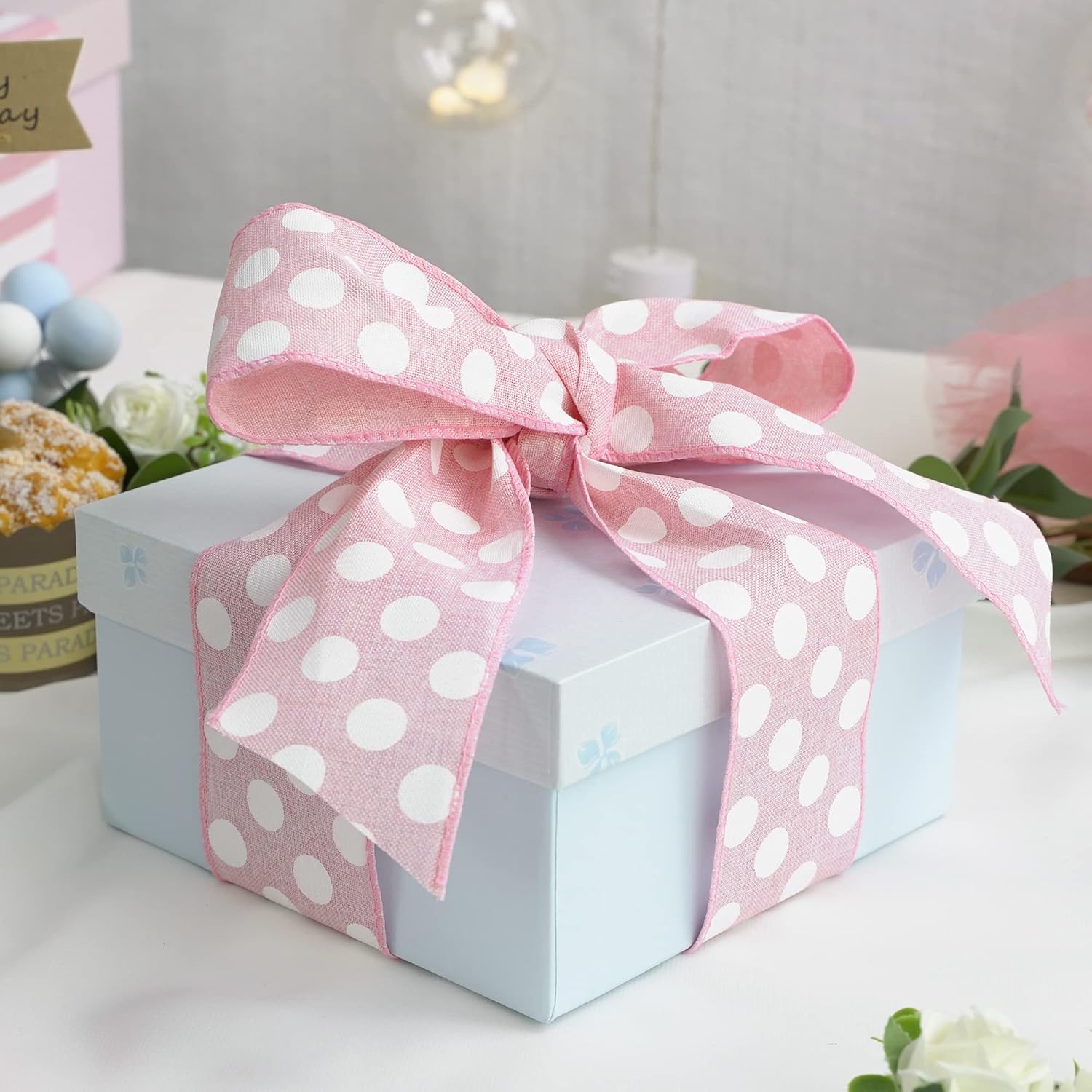 MEEDEE Pink Polka Dot Ribbon - 2.5 inch Wired Ribbon for Baby Girl Wreaths & Crafts, 10 Yards
