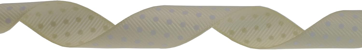 Polka Dot Grosgrain Ribbon 25 Yard Each Roll 100% Polyester (3/4", Beige)