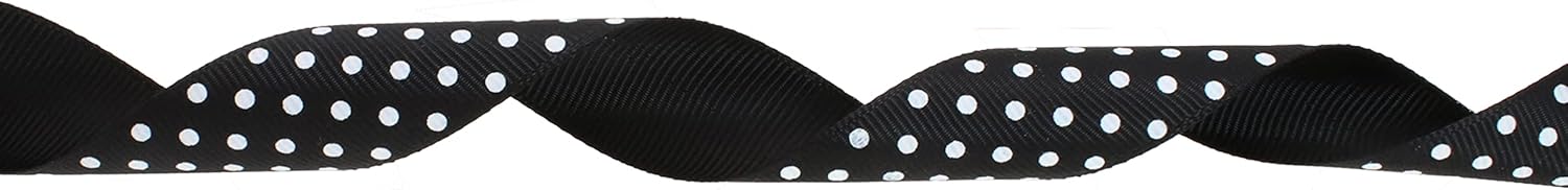 Polka Dot Grosgrain Ribbon 25 Yard Each Roll 100% Polyester (1", Black)
