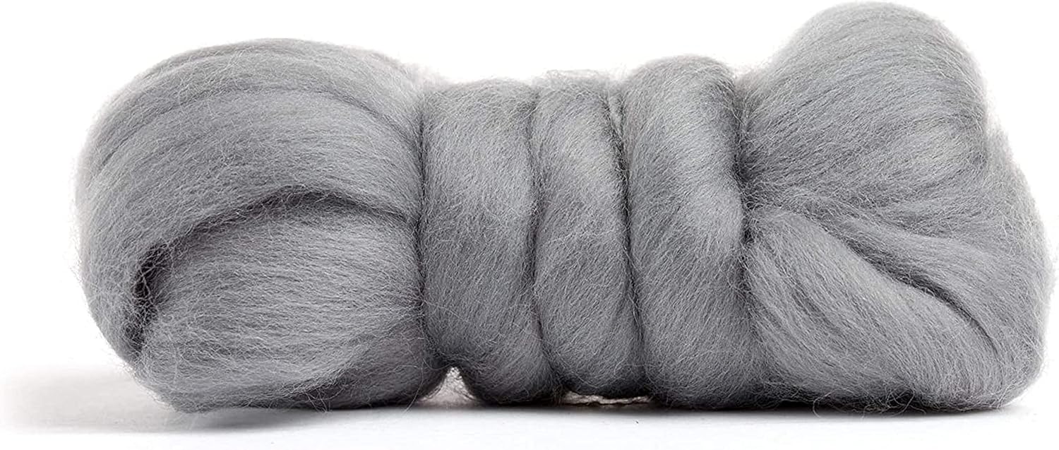 Revolution Fibers Merino Wool Roving | Premium Combed Wool Top | 22 Micron, Perfect for Felting Projects, Spinning, Wall Hangings and Tapestry (Ash)