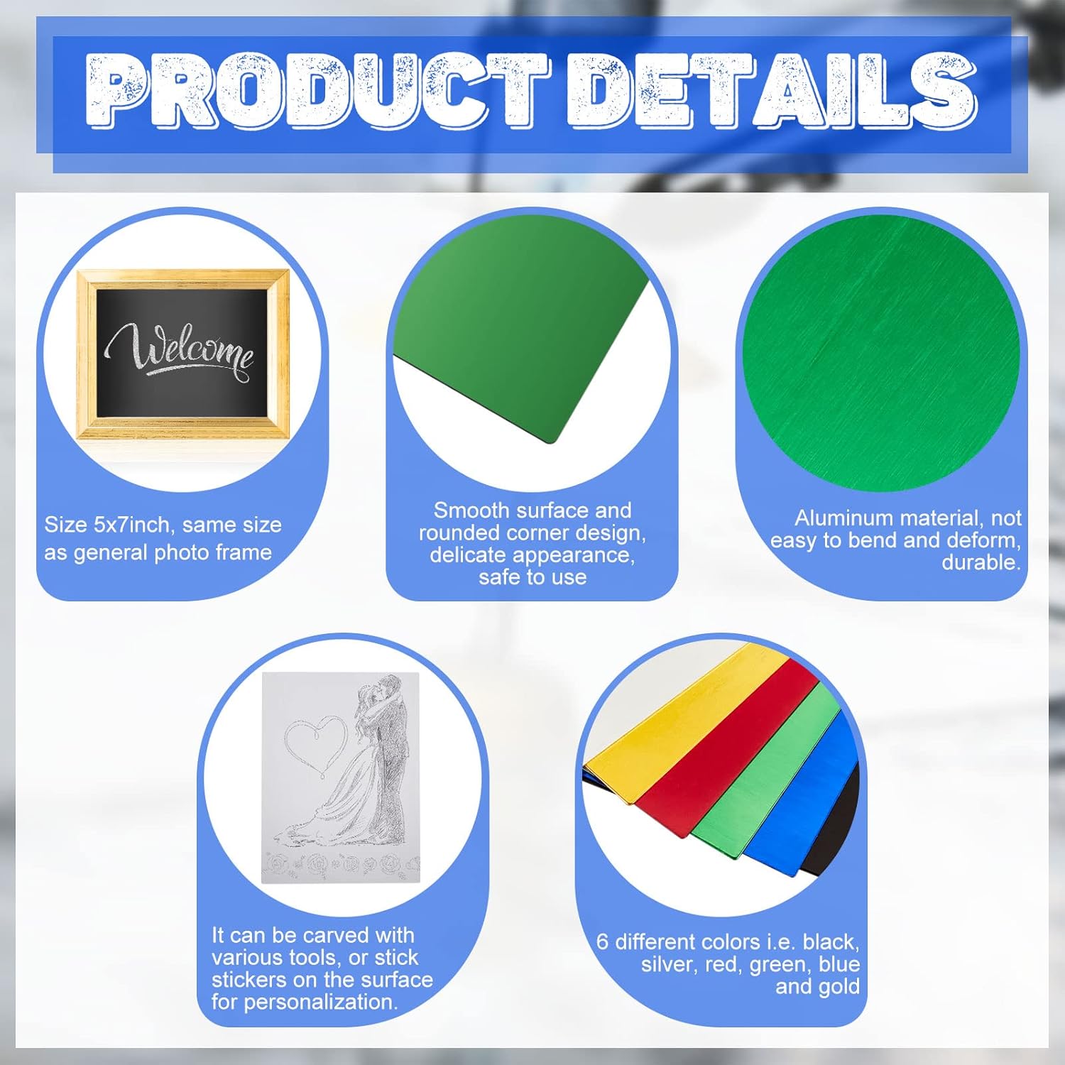 6 Pack 5 x 7 Inch Metal Engraving Sheets Multicolor Laser Engraving Blanks 0.8 mm Anodized Aluminum Sheets for Precision Etching Tool Tip Engraver DIY Interior Signs Badges Crafting