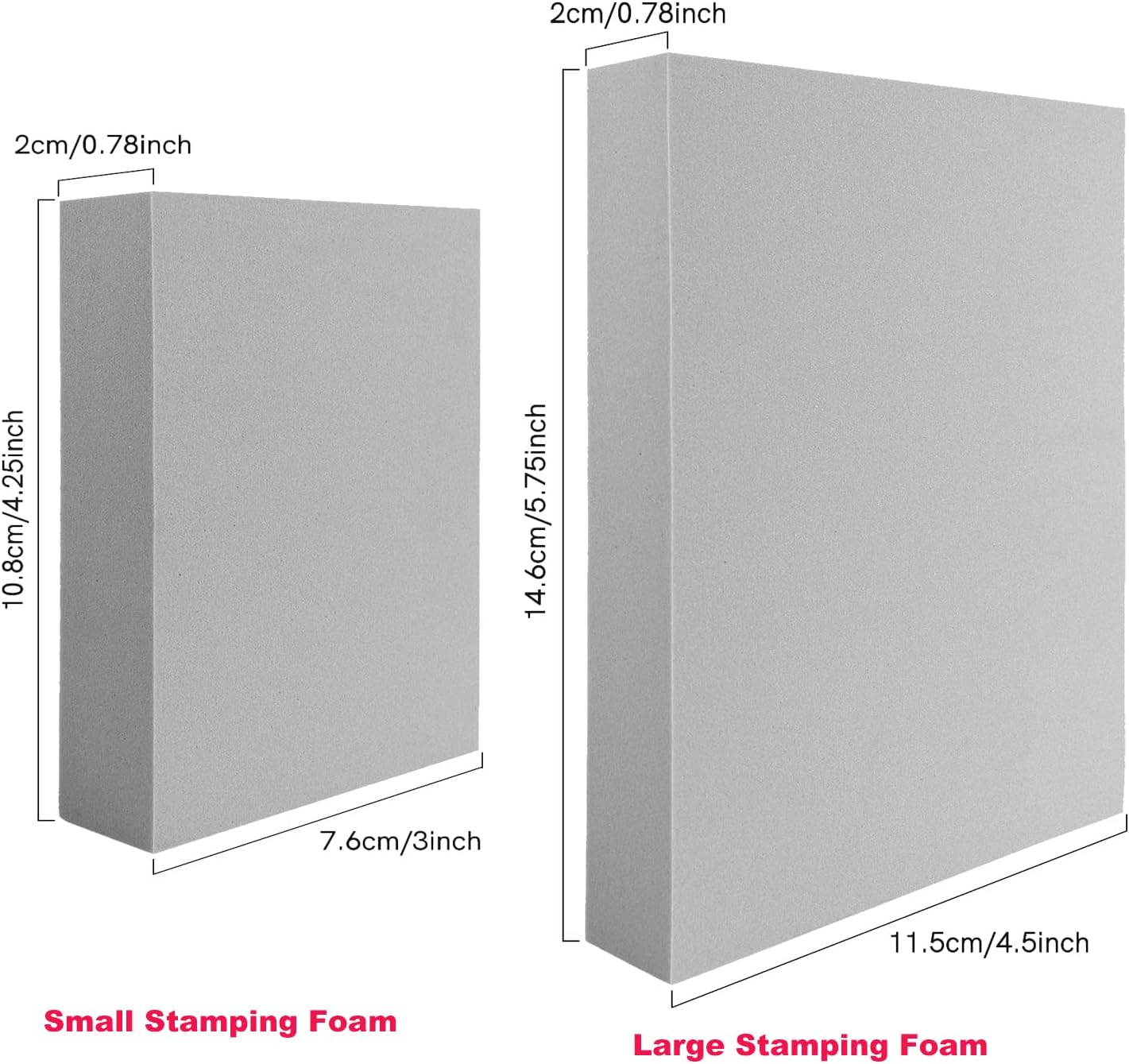 - â¨[REUSABLE MOLDABLE FOAM BLOCKS] -- 6 pieces of gray stamping foams in the package and2pcs Acrylic Stamp Block Grid Clear Stamping Platform , Stamping Foam 2PCS Large Stamping FoamSize 11.5X14.6X2cm/4.5X5.75X0.78inch 4PCS small Stamping FoamSize 7.6x10.8x2cm/3x4.25x0.78inch ,2PCS Acrylic Stamp Block Size:13x16x0.8cm/9x12x0.8cmfor DIY Scrapbooking Paper Crafting Arts Supplies Handmadewhich can easily meet your daily use and replacement demands for Arts and Handicrafts Projects.