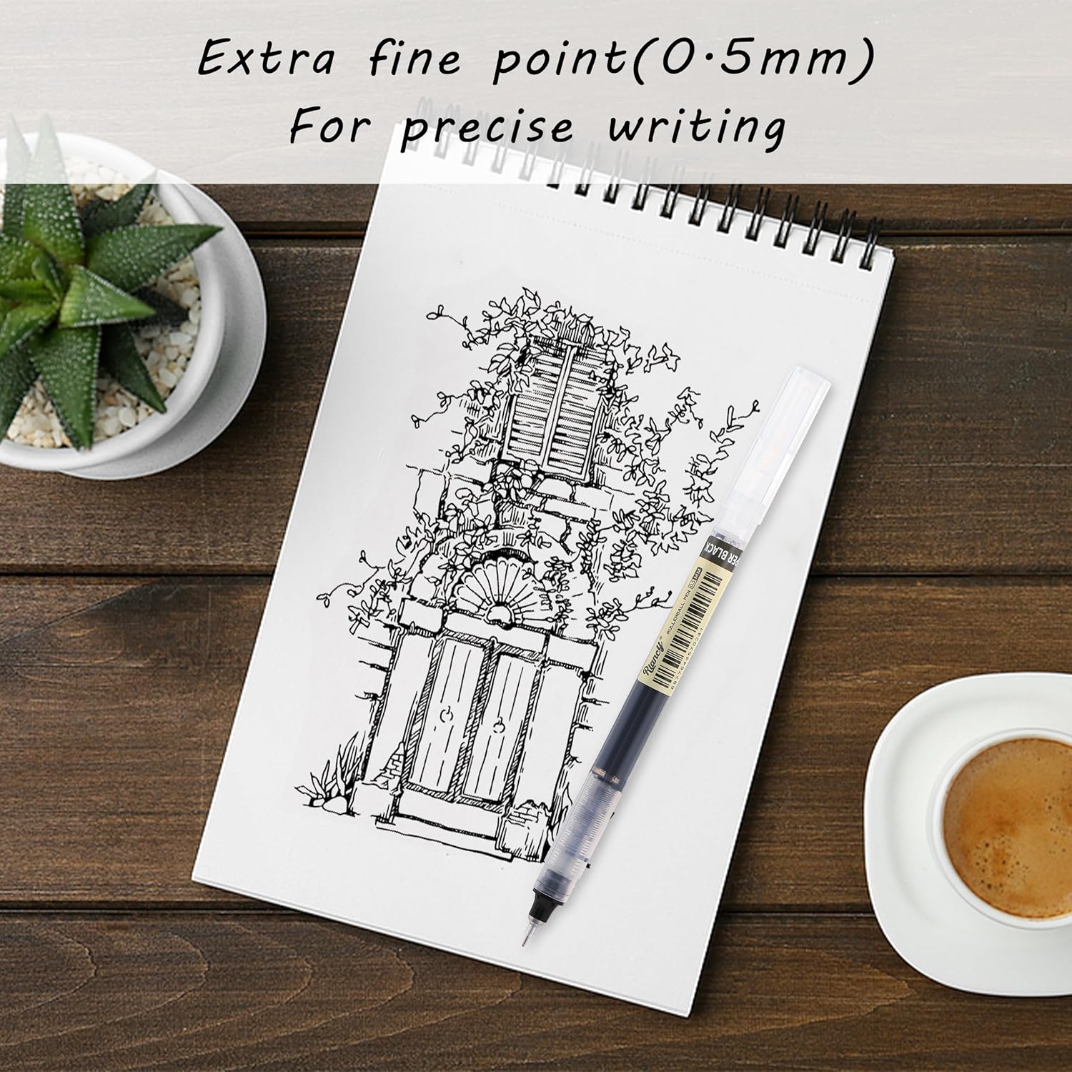 - FEATURE _ these roller ball pens come with an extra-fine point (0.5 mm) 12PCS black ink,8PCS blue ink, and 4PCS red ink for precise writing, black pens fine point IN ONE PACK.