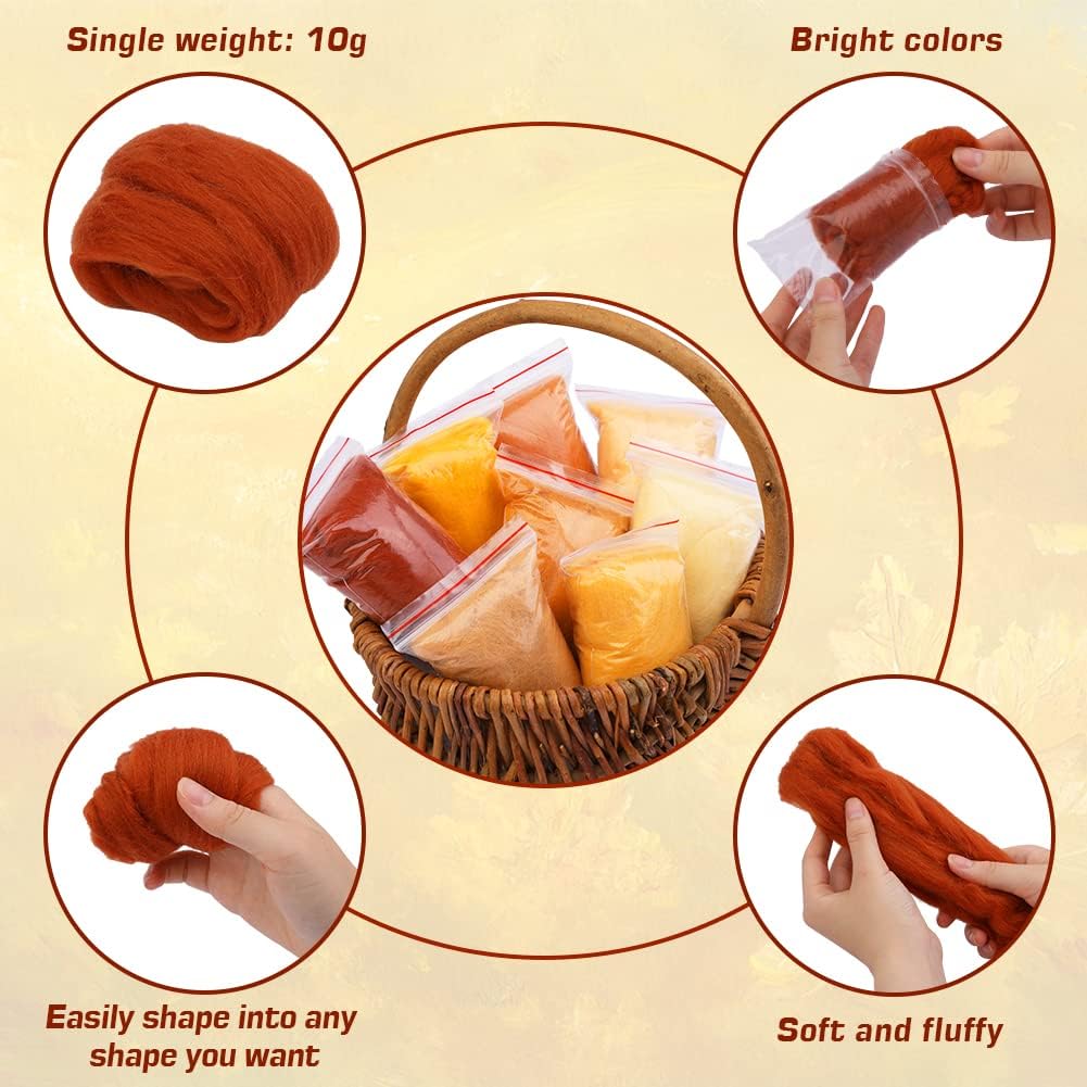 Wonvoc 2.82 oz Needle Felting Wool, 80 g Nature Wool Roving Yarn, Needle Felting Wool Bulk, Hand Spinning Wool Roving Wool Yarn for DIY Craft Materials and Felting Wool Craftsmen, 10g/Color (Autumn)
