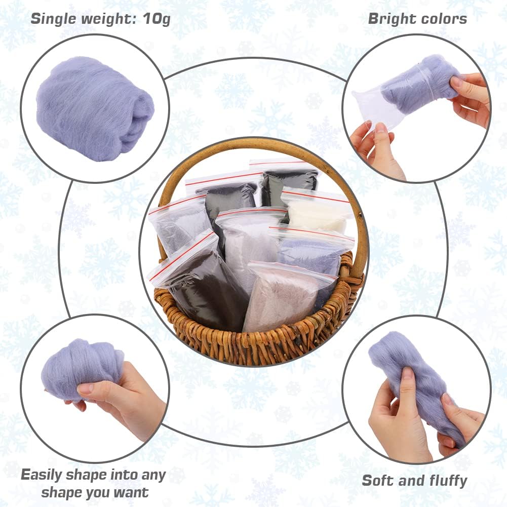 - What's Included: Come with wool roving in different color, each color is individually packaged in a clear and resealable bag, approximately 10 gram weight per color