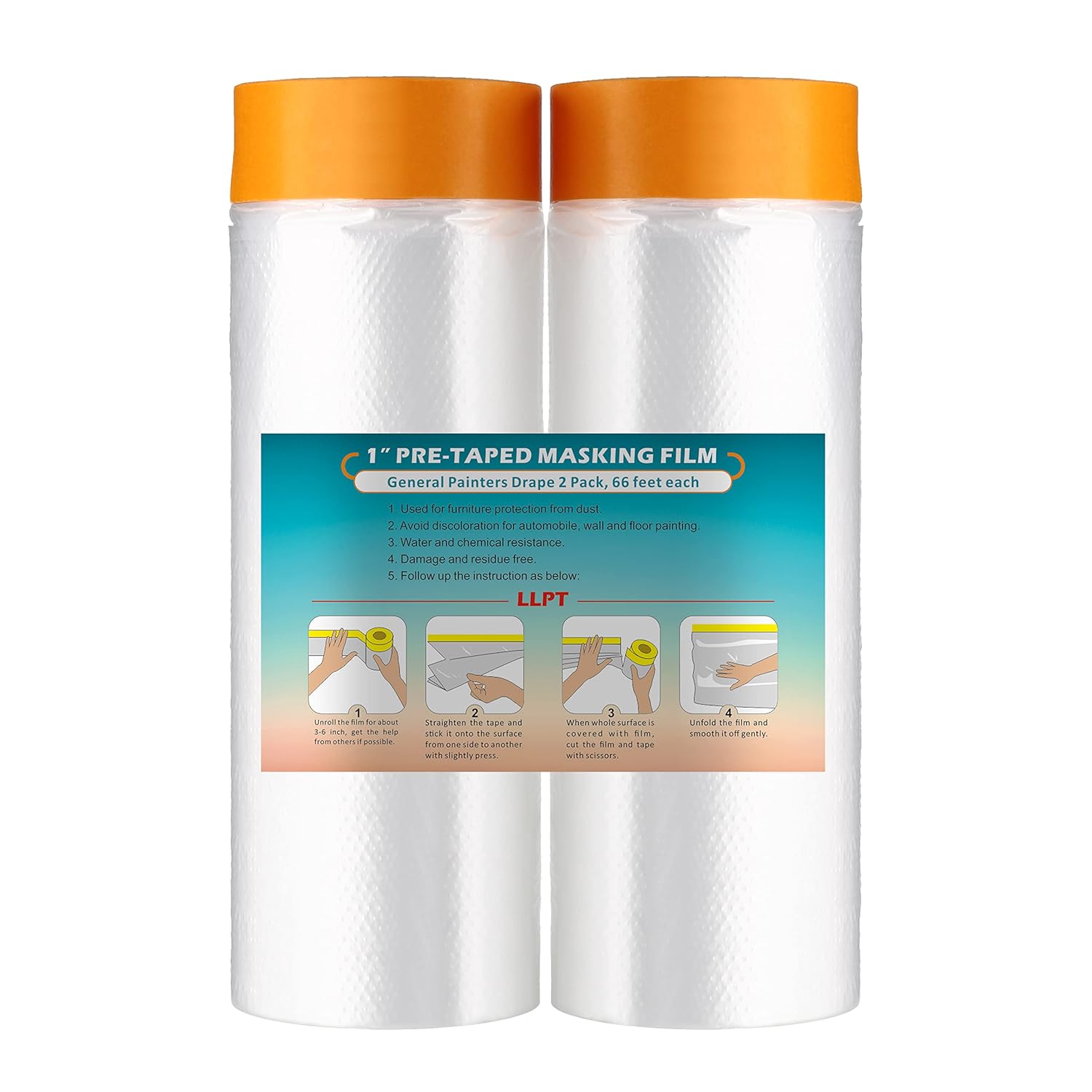 - EFFORTLESS MASKING SOLUTION: Say goodbye to messy edges and time-consuming masking tasks with LLPT tape and drape film masking tape. Designed for convenience and precision, this tape offers a hassle-free solution for creating clean edges and safeguarding surfaces during painting or construction endeavors. By saving you time and effort, our masking tape enables you to focus on the task at hand, whether it's achieving flawless paint lines or protecting surfaces from overspray.