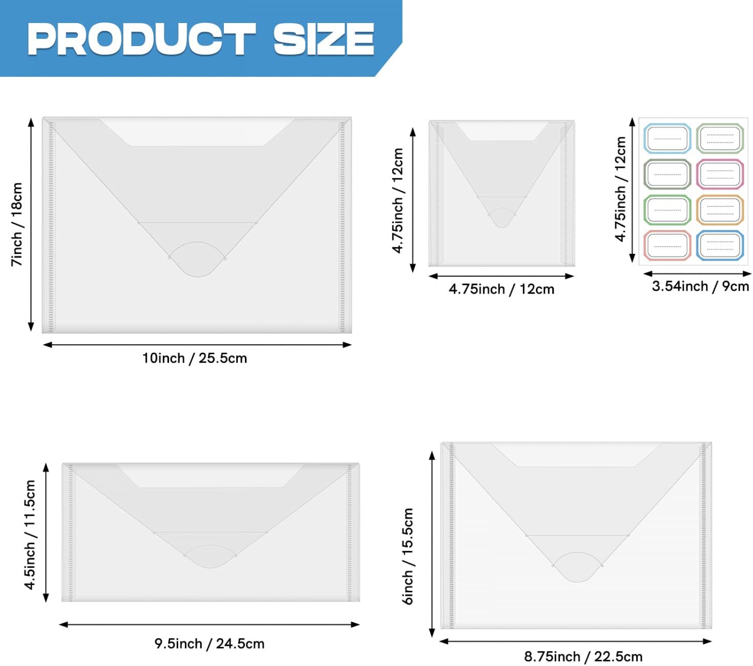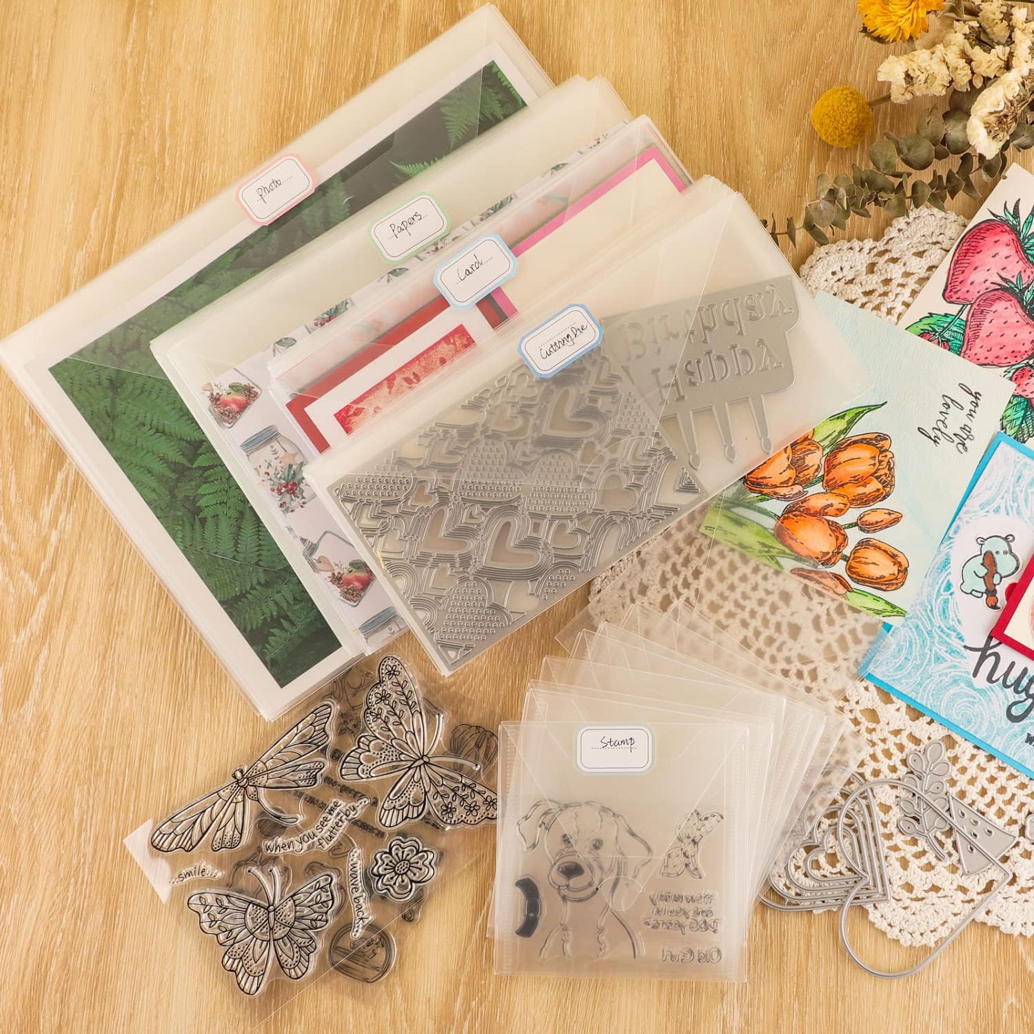 - π[STAMP AND DIE STORAGE BAG ] -- BAOFALI 40pieces stamp and die storage pockets 4sizes with 48 label stickers ,10Pcs Bag sizes 7x10inch/18x25.5cm ,10Pcs Bag sizes 6x8.75inch/15.5x22.5cm 10Pcs Bag sizes 4.5x9.5inch/11.5x24.5cm 10PcsBag sizes 4.75x4.75inch/12x12cm10 pieces in each size. There is always a size storage bag that fits your stamp or die enough quantity to meet your needs for daily supplies,Conveniently organize and collect your handmade supplies