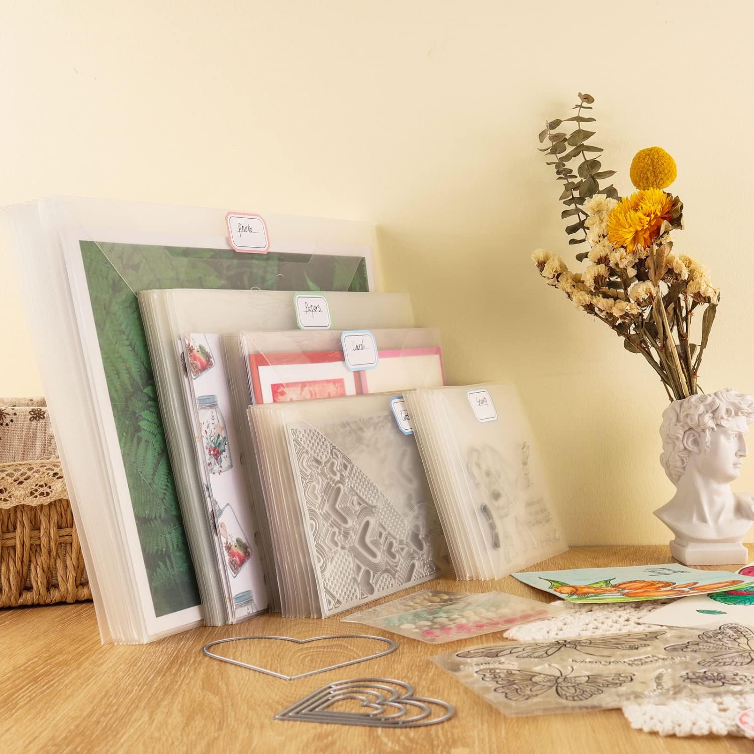- π[WIDELY USE] --Craft storage contain 40 label stickers, you can label each stamp and die storage bag ideal for storing paper crafting dies, stamps and stencils, artwork and discs, greeting cards, scrapbooking, paper card, embossing, album etc. suitable for DIY crafts and making a gift for your family and friend