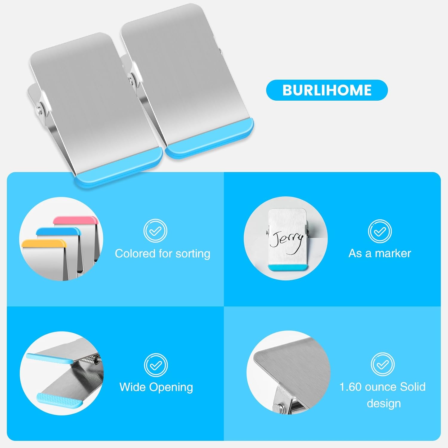 - - DIY Design & Markable Clip: Stainless steel chip clip is flexible assistant in daily life, the original intention of our design heavy duty chip clips is to make our life more convenient and add some fun. Whether you're marking dates or doodles, the flat sides make markers