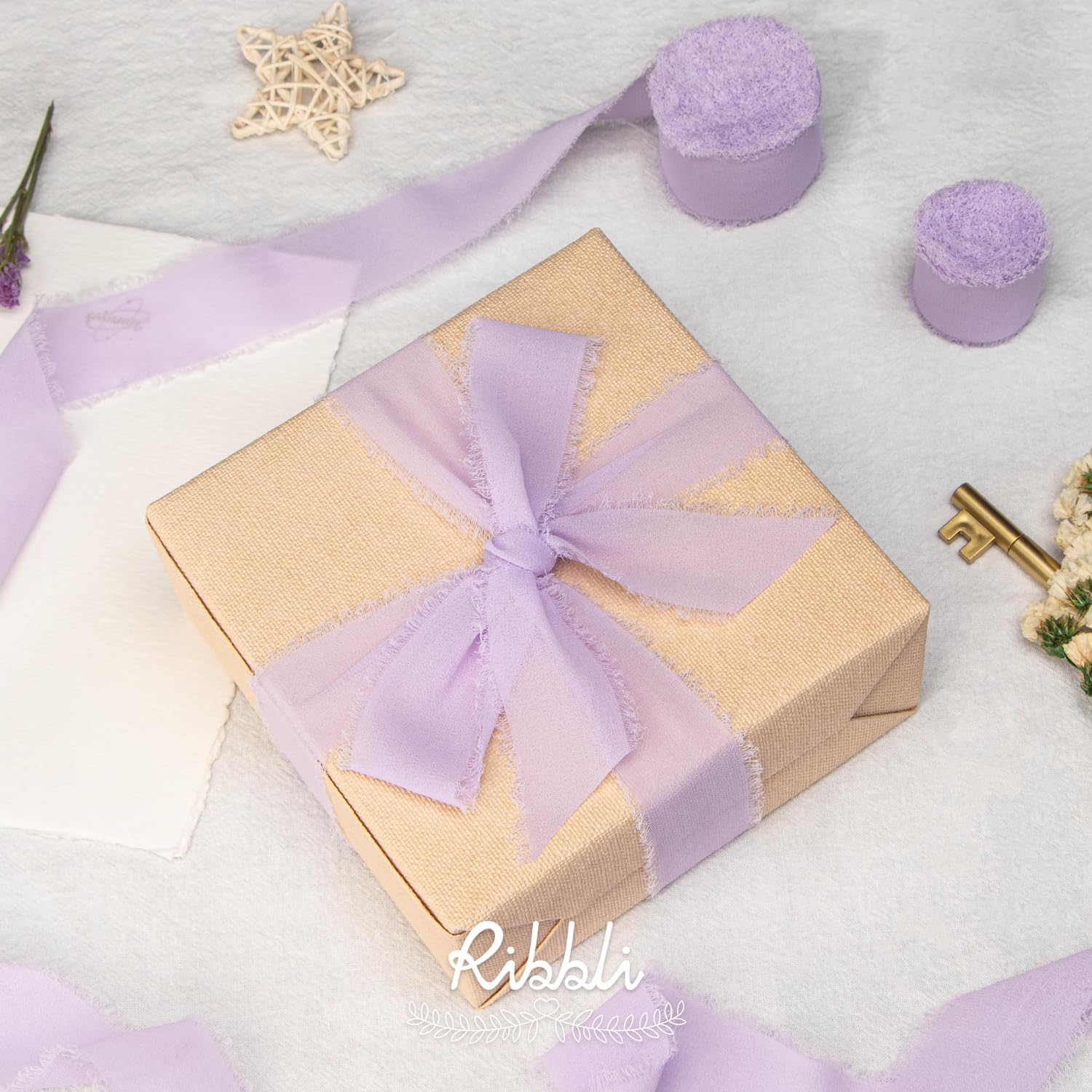 Ribbli Lavender Chiffon Silk Ribbon, 1-1/2 inch x 20 Yard, Handmade Fringe, Light Purple for Wedding Invitations, Bridal Bouquets, Flower Arrangement Decoration
