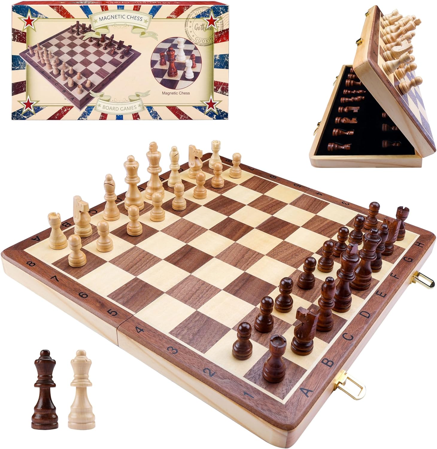 - [Best Gift Idea] : The wooden folding magnetic chess game board set is made of good quality wood that gives it a classic look. It is ideal for birthday gifts, Father's Day gifts, Christmas gifts, and other events. They can be used indoors or outdoors at home, school, classroom, party, travel, and camping. It's the most popular sharing board game.