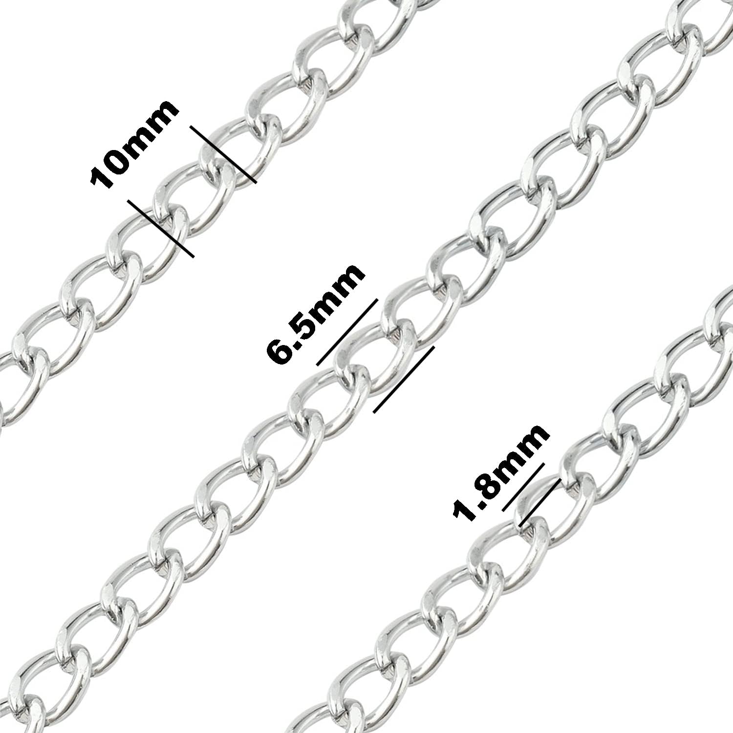 - SMALL & STRONG: The size of the chain links are 10mm long, 6.5mm wide, 1.8mm thick - Simple and legant, Great for jewelry making findings supplies. - Unwelded, strong and sturdy enough for bag accessories, dress decoration and home ornaments.