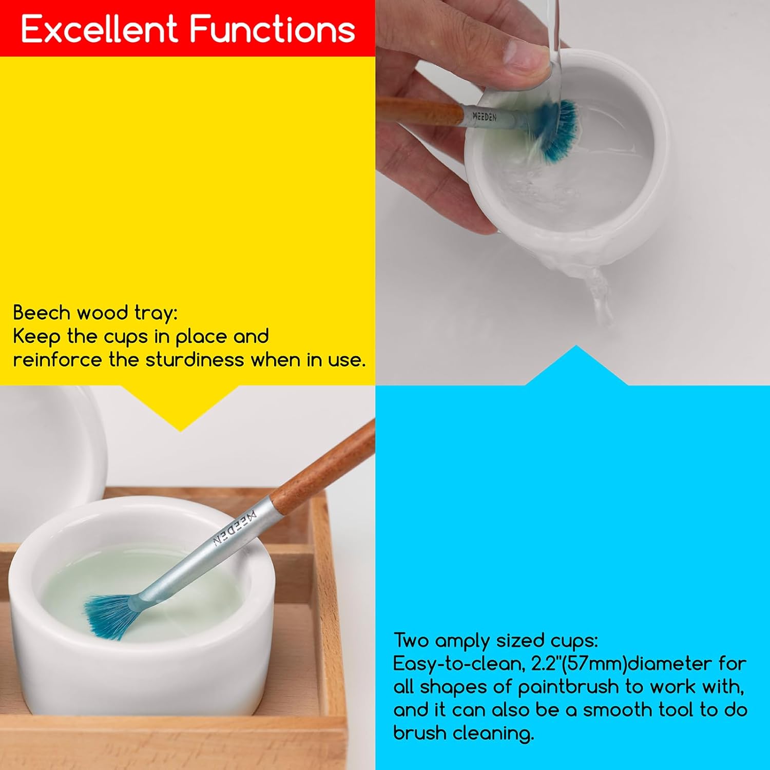 - EASY TO CLEAN: Due to the glazed surface of two porcelain cups, the oil resistance makes them can be the dippers for oil mediums and acrylic mediums and still smoothly easy to clean.