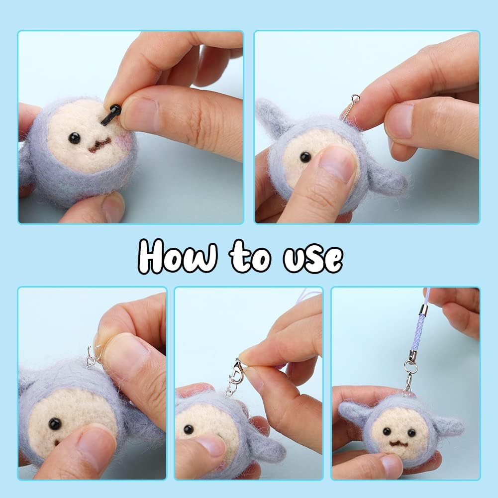 - The wool felt allow you felting cute crafts in different shapes. The oil wiping cloth allows you to wipe the protective oil on the felting needles. Of course, there are a series of necessary needle felting supplies such as awl, scissor, tweezers, jump rings tool opener, dust plug, clear glue stick, phone lanyard, finger cot, plastic nose, plastic eyes, wooden felting handle, wooden felting handle with 8 needles, 9-shape needle, T-shape needle, etc.