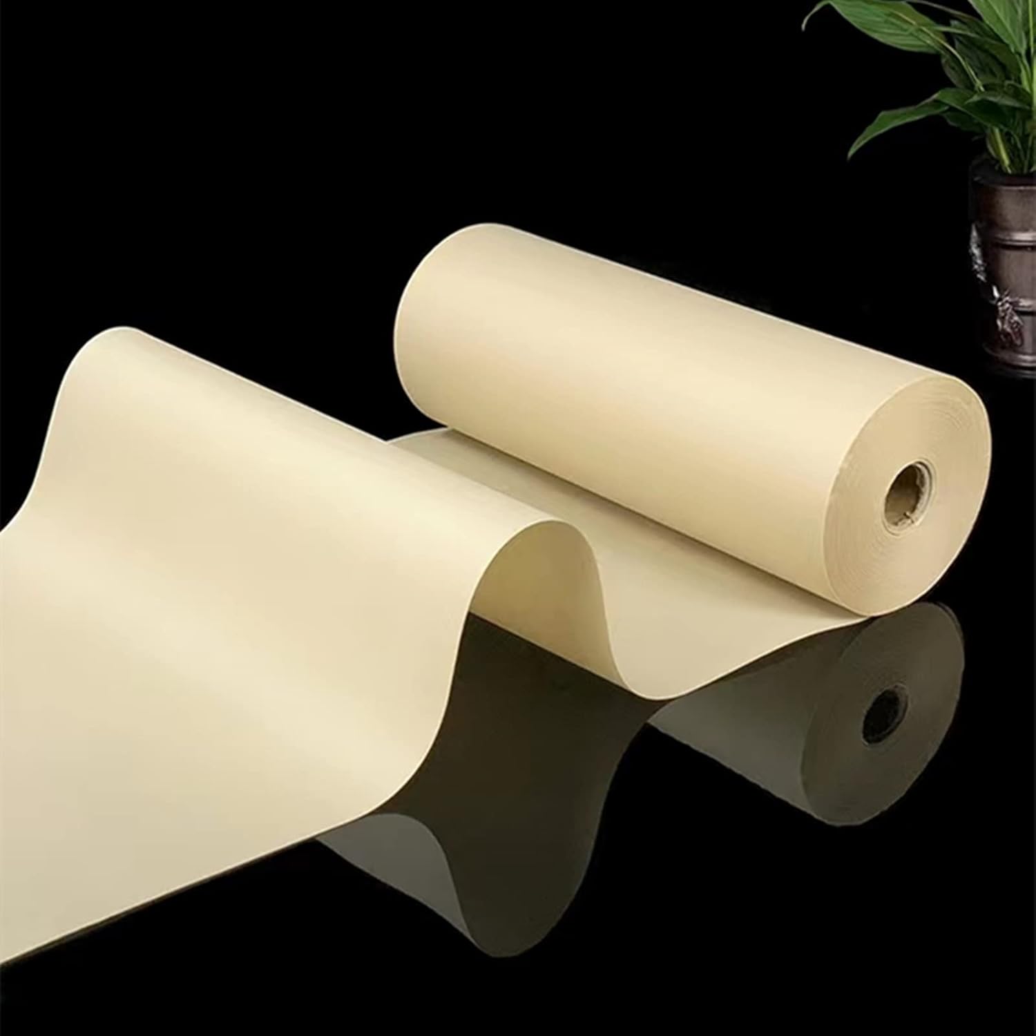 MEGREZ Roll Pack Xuan Paper Thicken Calligraphy Xuan Paper Sumi Paper for Practice Chinese Japanese, 35cm x 100m(13.8in x 328ft), Half Raw Ripe Xuan Paper, Yellow