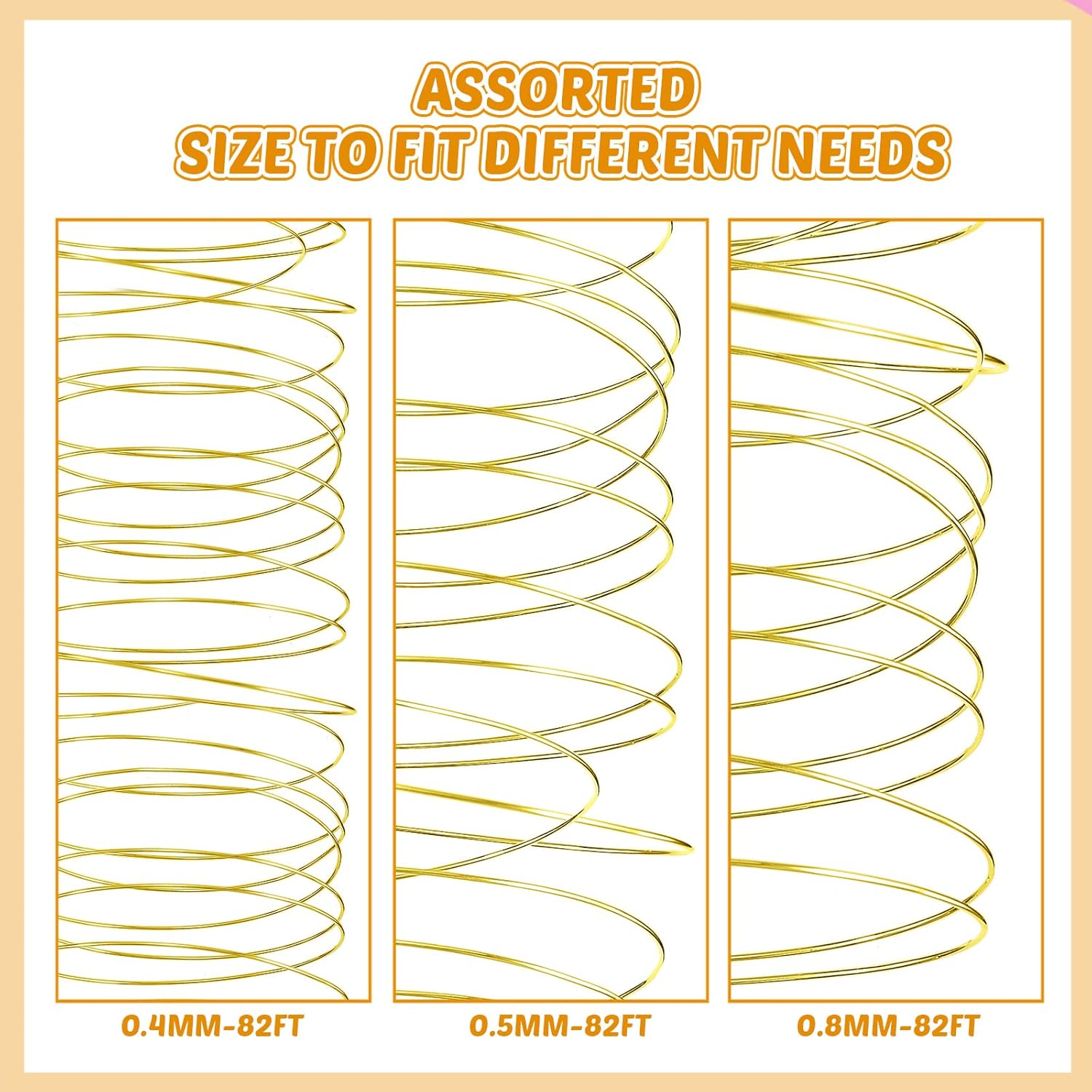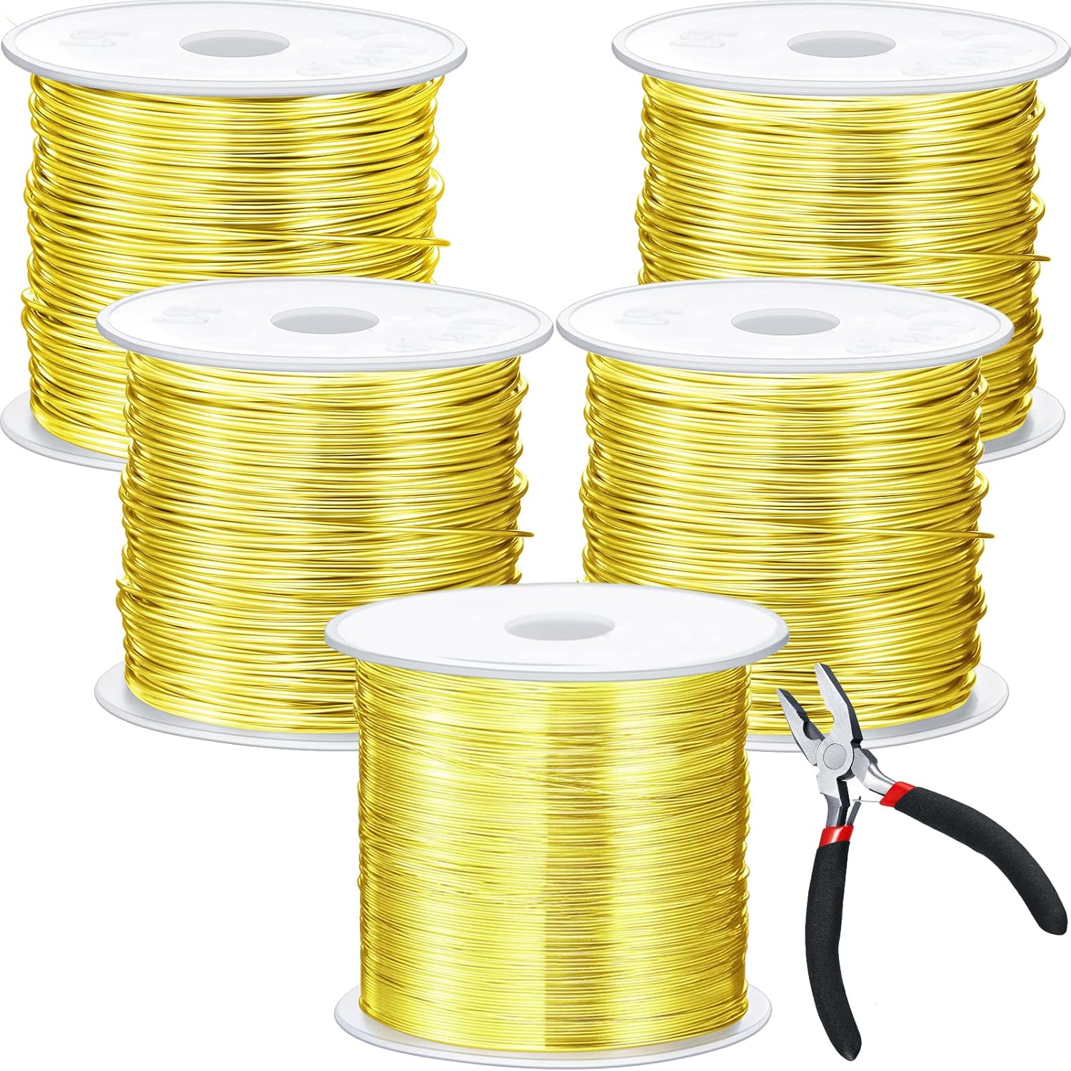 Funrous 5 Rolls 5 Size Jewelry Wire 18, 20, 22, 24, 26 Gauge Copper Wire Kit Jewelry Beading Bendable Craft Metal for Making Crafts, Sculpting with a Pliers(Gold)