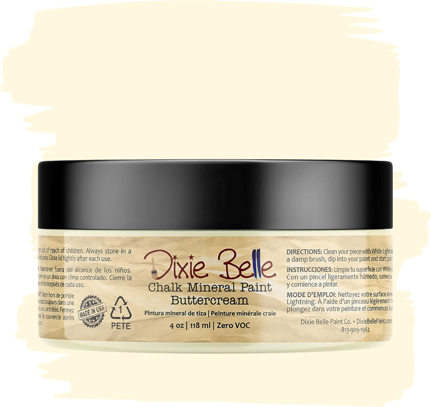 Dixie Belle Paint Company Chalk Finish Furniture Paint - Buttercream (4oz) - Matte Creamy White Chic Chalk Mineral DIY Furniture Paint
