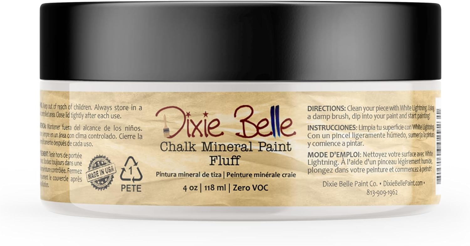 Dixie Belle Paint Company Chalk Finish Furniture Paint - Fluff (4oz) - Matte Soft White Chic Chalk Mineral DIY Furniture Paint
