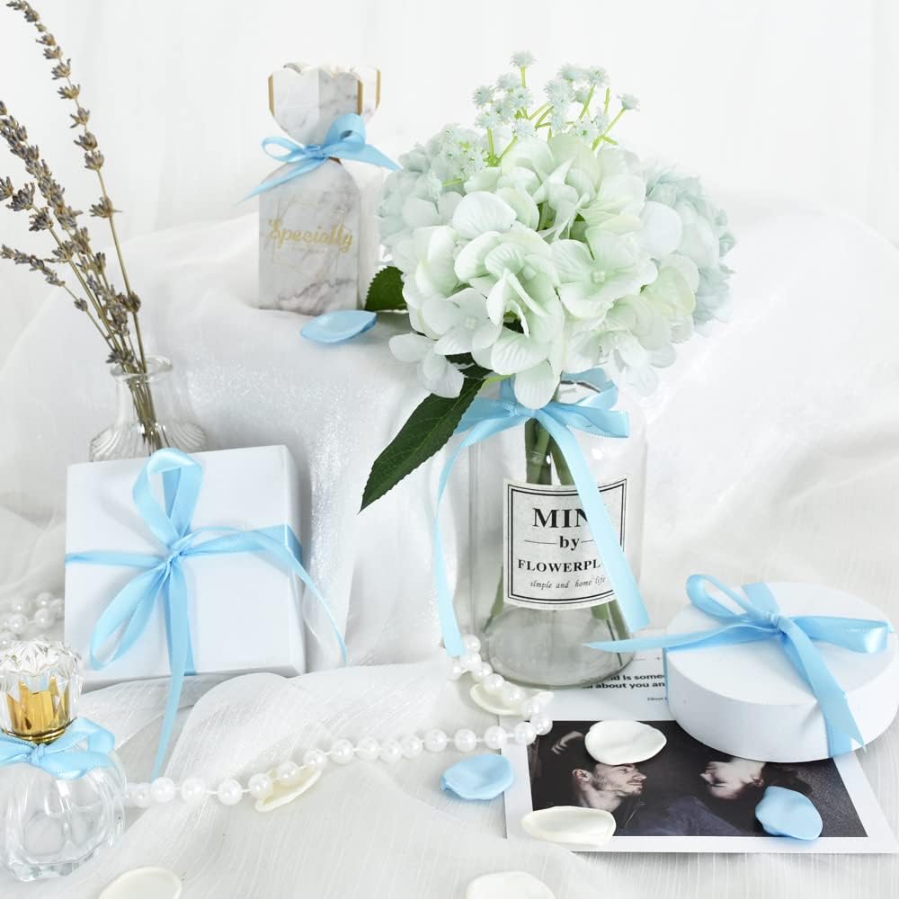 TONIFUL 3/8 Inch x 100yds Sky Blue Satin Ribbon Thin Solid Fabric Ribbons Roll for Gift Wrapping Invitation Floral Hair Balloons Craft Sewing Party Wedding Popsicles Decoration Valentine's Day Bouquet