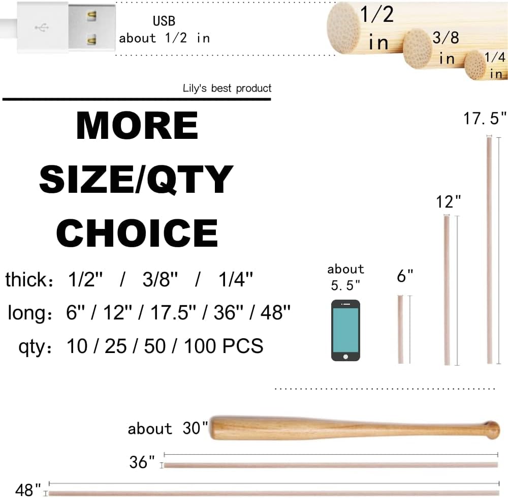 HOPELF 50PCS Bamboo Dowel Rods - 3/8 x 48 Inch, Craft Sticks, Cylindrical, Pack of 50