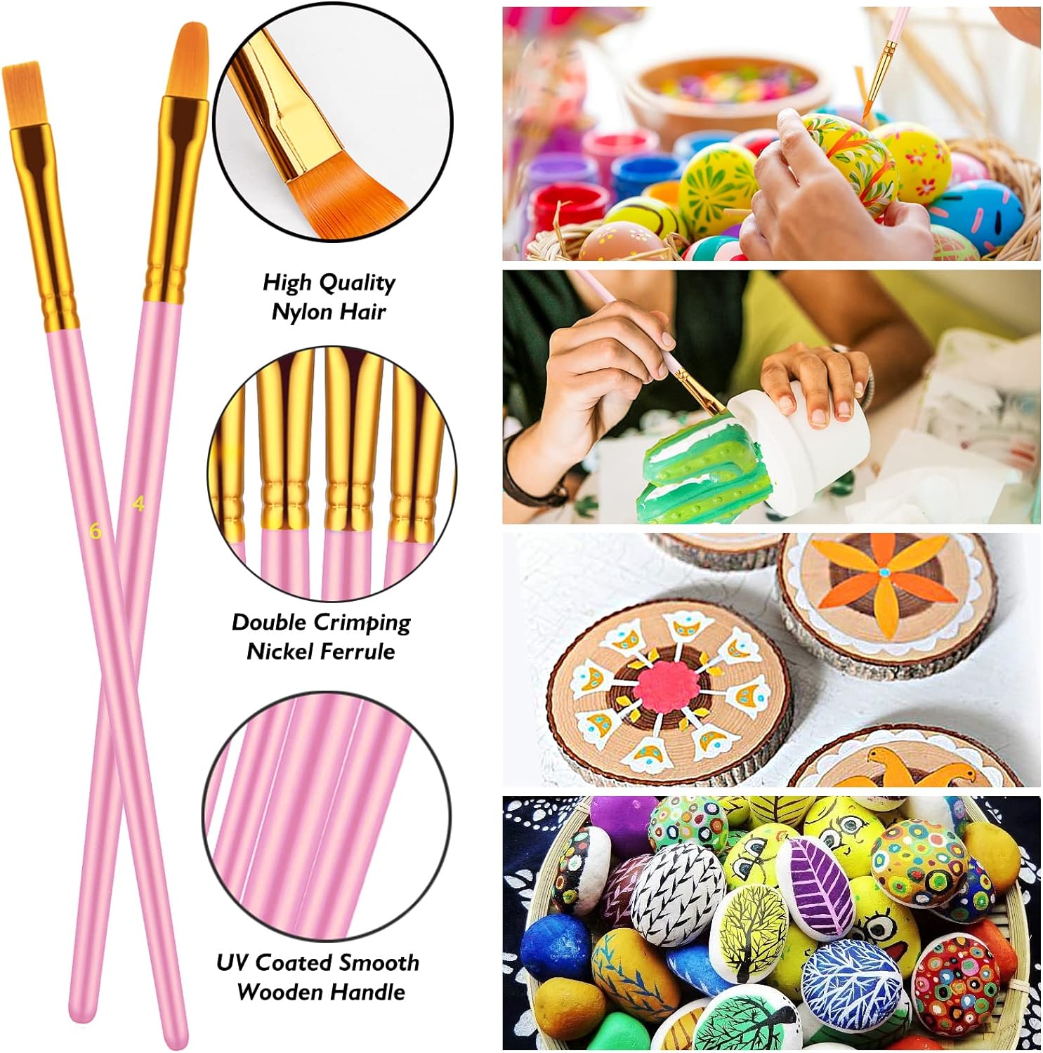 - Multi-purpose Painting Brushes: Assorted Sizes & Shapes of Paint Bush Bulk Perfect for Art Painting, Which Can Cover all Your Needs. Works Well with Art, Watercolor, Oil, Canvas, Gouache, Rocks, Vinyl, Acrylic Painting, Body, Nail, Face Painting, Fabric, Egg, Miniature, Model, Wood, Glass, Cup, Ceramic, Fine Work, Art Class, Craft Art Painting, DIY Art Crafts etc. Acrylic Paint Brushes Allow You to do Fine Detail Painting Precisely to Reach Tight, Small Spots or Tiny Points.
