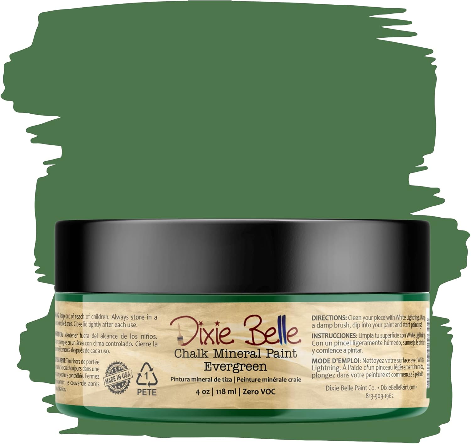 Dixie Belle Paint Company Chalk Finish Furniture Paint - Evergreen (4oz) - Matte Bold Green Chic Chalk Mineral DIY Furniture Paint