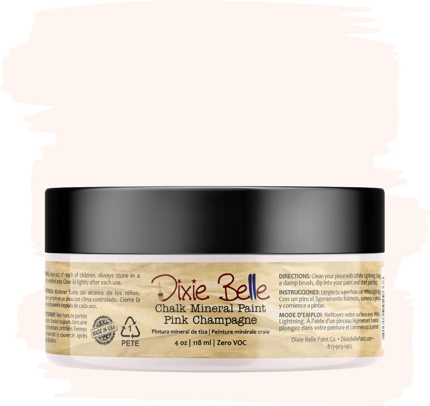 Dixie Belle Paint Company Chalk Finish Furniture Paint - Pink Champagne (4oz) - Matte Pale Pink Chic Chalk Mineral DIY Furniture Paint