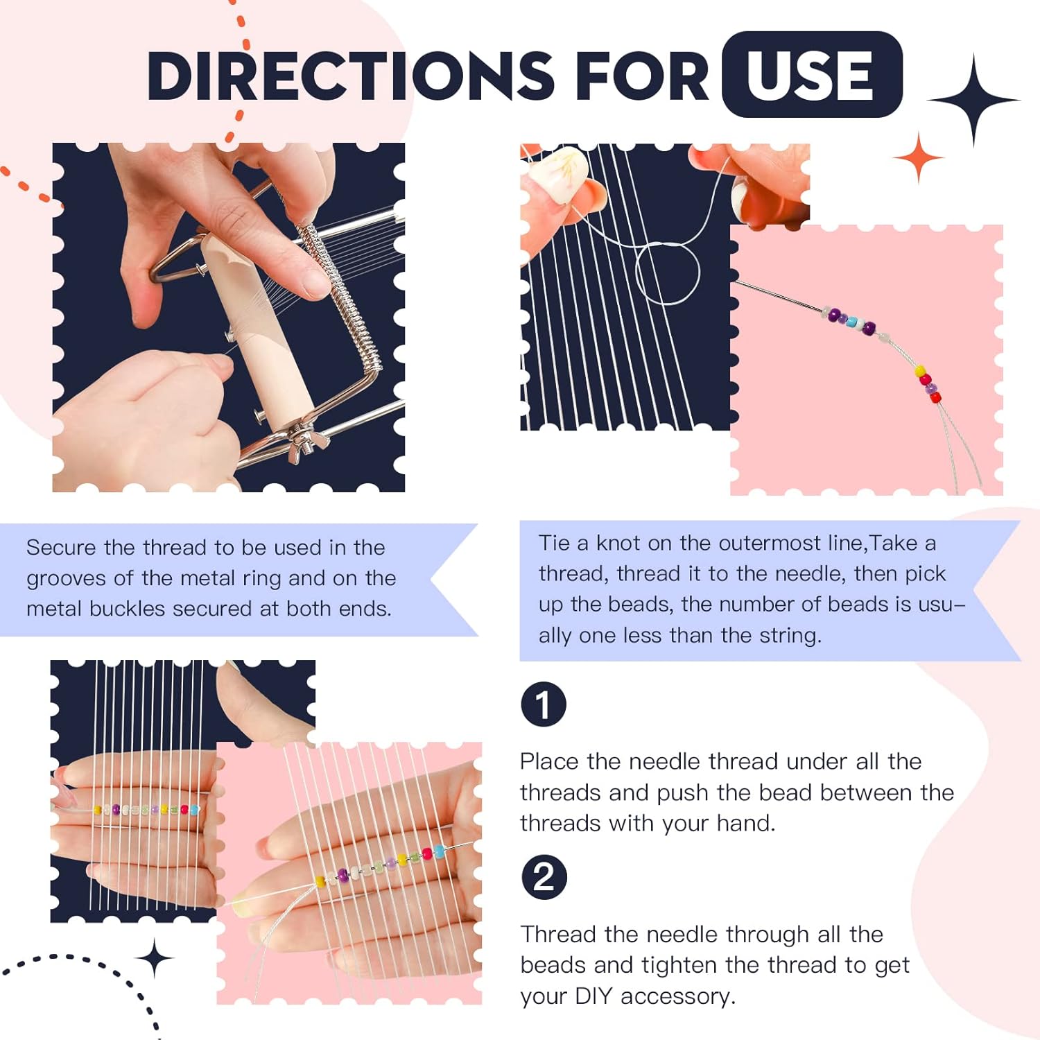 - CONVENIENCE AND PRACTICALITY: Our bead looms are made of stainless steel, it is durable and can be reused for a long time. The length of the bead loom can be adjusted to personal preference with the turn of a button. One bead loom instead of multiple bead looms can make jewelry crafts of various lengths, saving time; saving money.