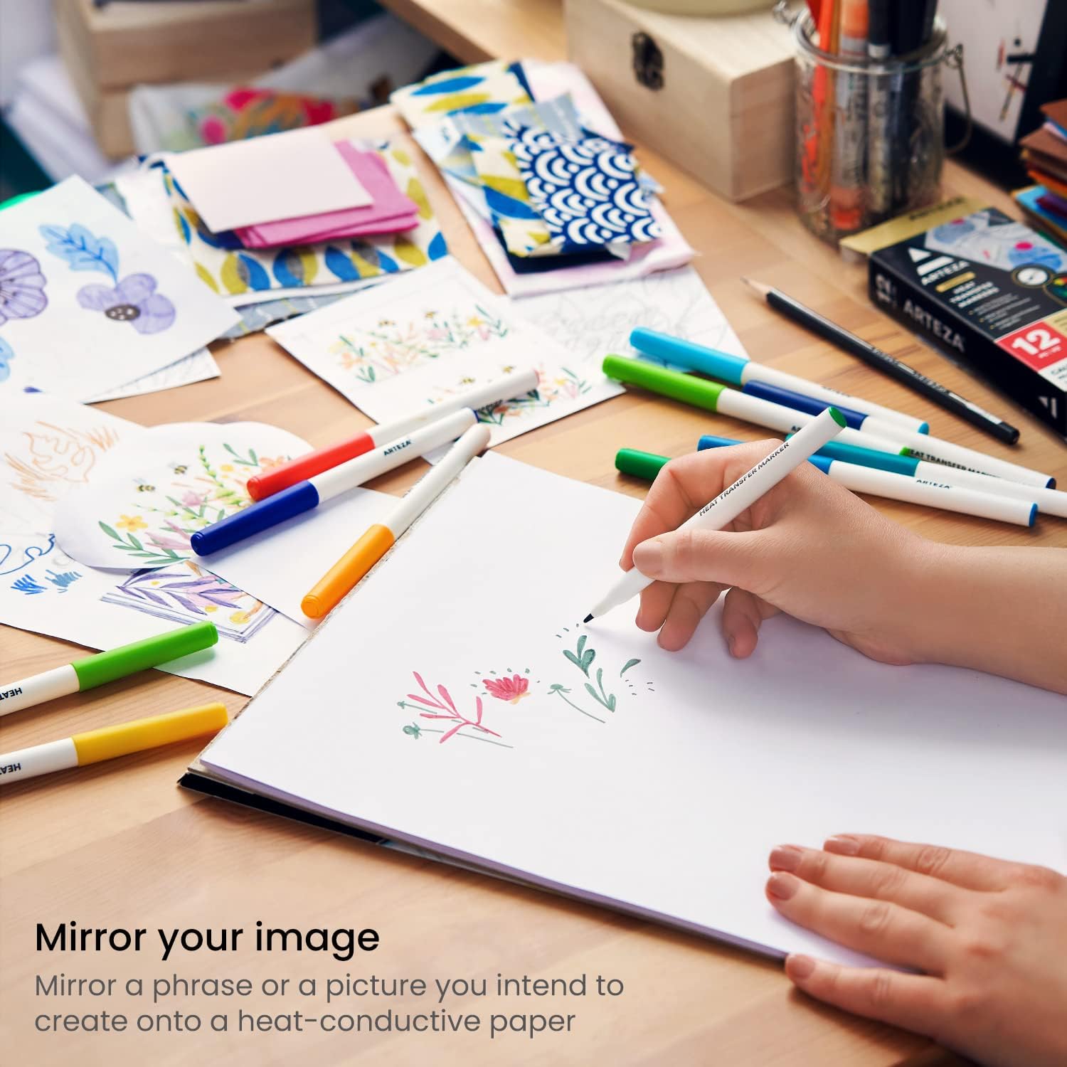 ARTEZA Heat Transfer Fabric Markers, Set of 12, Fade-Resistant Heat Transfer Ink, Colored Fabric Pens for Polyester and Cotton Garments