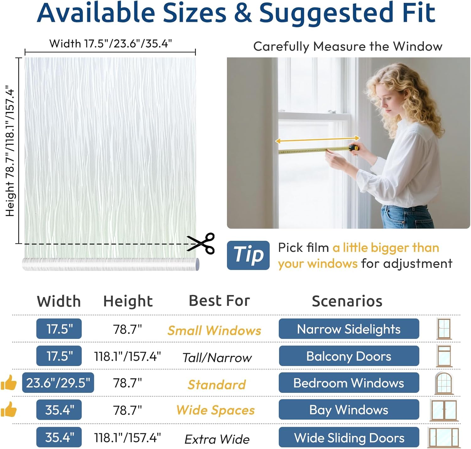 - Wide Application: This window cling privacy film adds a decorative and functional cover to smooth glass door without dust or oil. Widely suitable for different places: kitchen, living room, dining room, bedroom, office, hotel, classroom, lobby, garage and sliding door