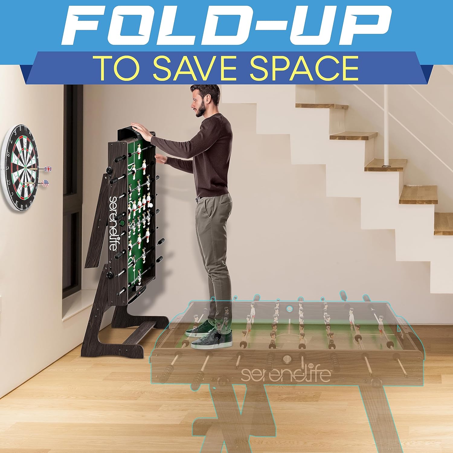 SereneLife Folding Foosball Table, 4’ x 2’ Full Competition Size Foldable Space Saving Table Soccer for Home, Arcade Game Room, for Indoor or Outdoor, Family Game Night, Perfect for Kids and Adults
