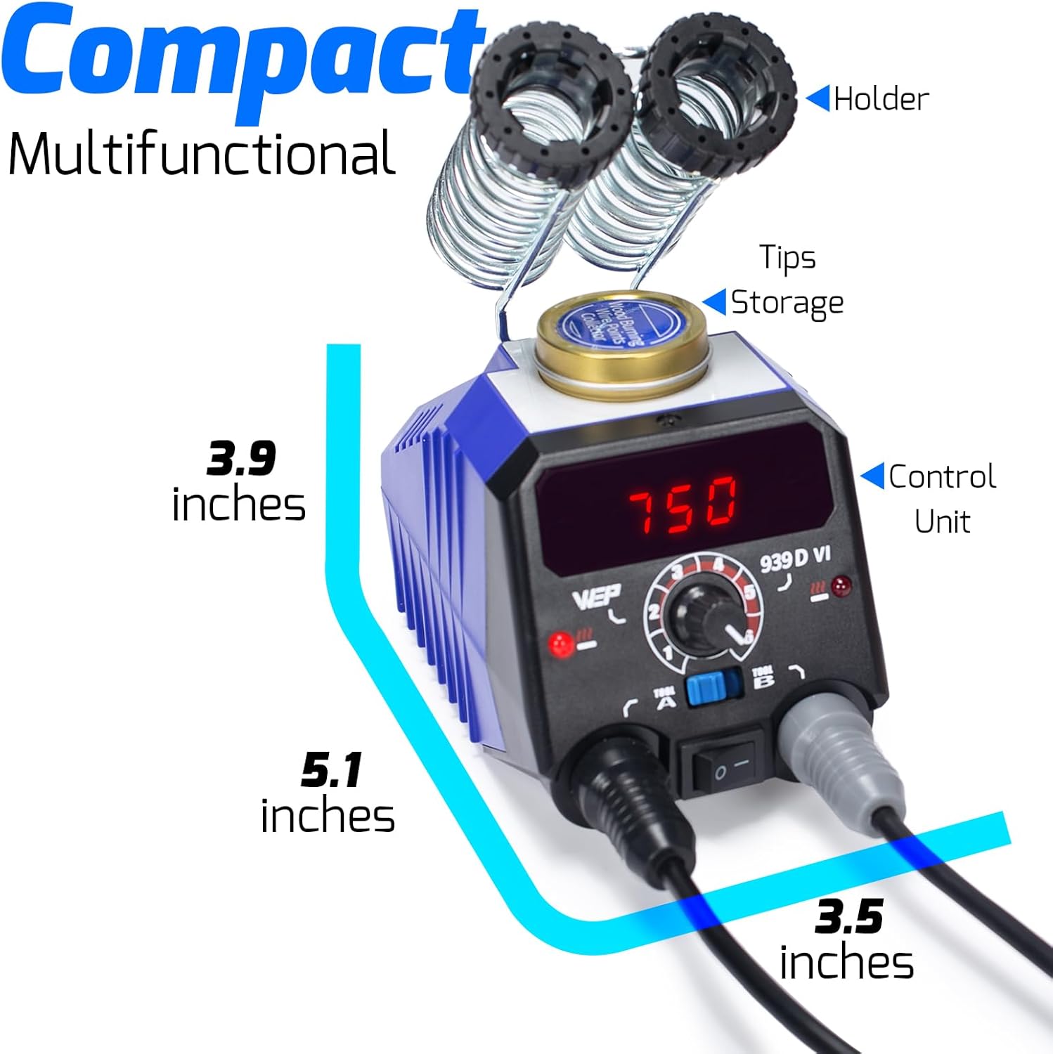 WEP 939D-VI Dual Pen Wood Burning Kit 250-750℃/482-1382℉ A/B Toggle Wood Burning Tool with 2 Detachable Pens, 20 Wood burner Tips, Dual-Barrel Holder. Suitable for Pyrography, Leather Burning Kit