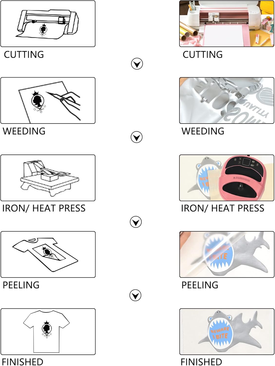 - Compatible With All Plotting Cutters: Our htv roll Heat press vinyl is easy cut with literally, any die-cut machine whether professional or home hobby crafting will be perfect. It adheres to the garment just like print which makes you can barely feel it, with either household flat iron or any kind of heat press machine.