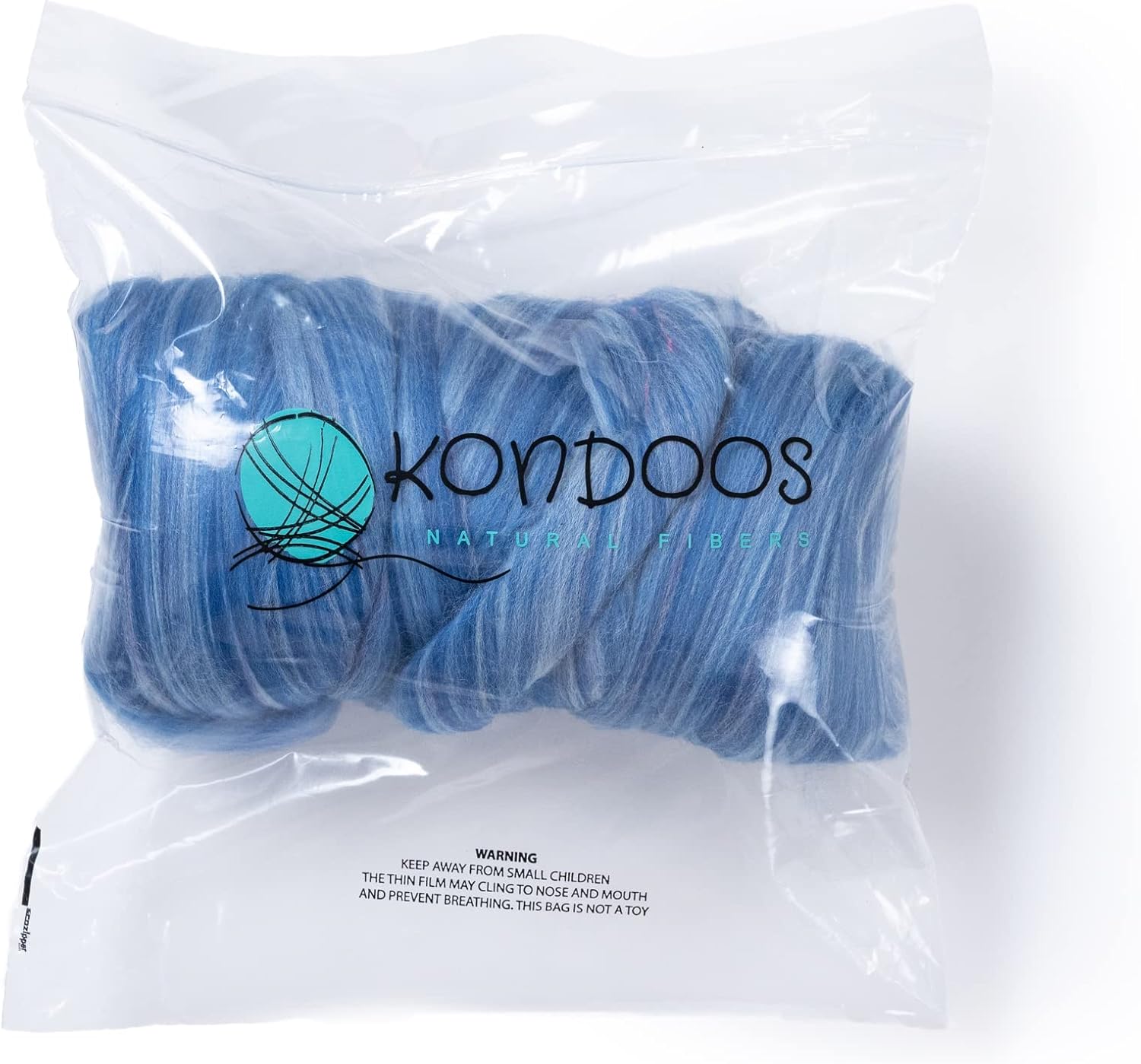 Multi Colored Natural Wool roving, 1 lb. Best Wool for Needle Felting, Wet Felting, handcrafts and Spinning. (Ocean Blue, 1lb)